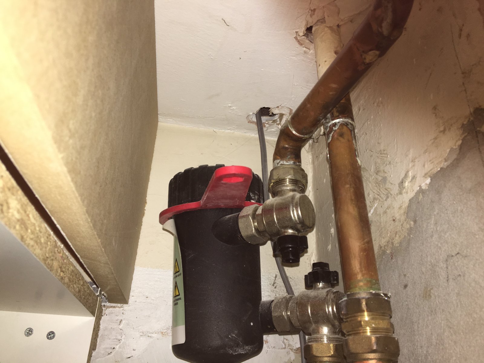 I was fitting a new shower pump a few days ago and managed to get an airlock in the cold water pipes. When trying to clear it in normal ways had failed I was told (elsewhere I should add) to run the shower and put my finger over the end of the pipe so that the pressure from the hot water pushed the air lock out of the cold (it's a thermostatic shower mixer). It didn't work and it also now seems to have put air into my hot water system. This morning the boiler was making a loud bubbling sound as it drew in water - and now it's failing to fire up, making lots of noise and a we have no hot water or heating. It tries to start, makes quite a bit of noise and then the flame indicator on the panel goes out and it tries again. After it's failed five times it then stops trying and throws error code F1 which means it's failed to ignite five times in a row.