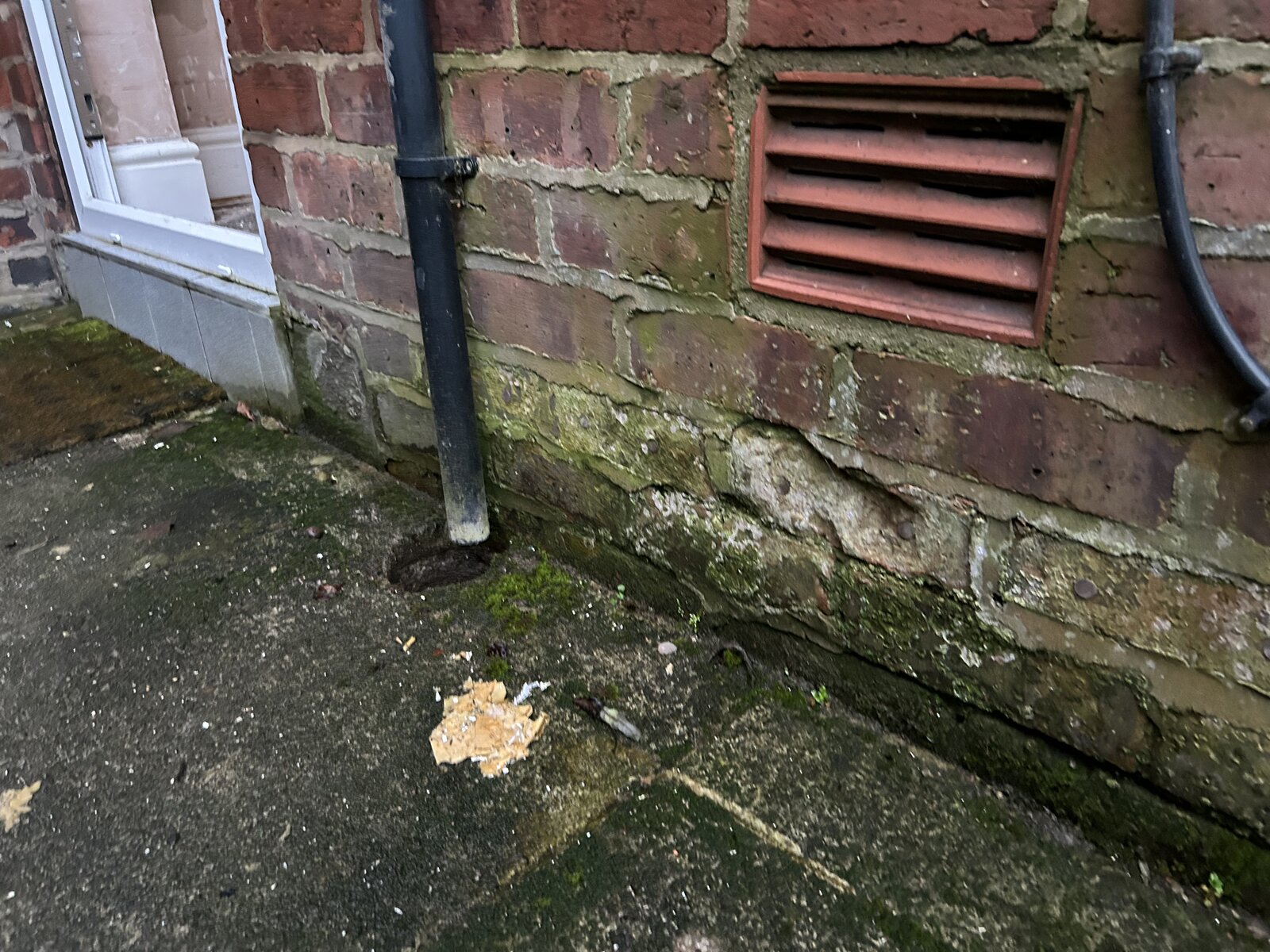 I’m thinking of removing this airbrick as I don’t believe I need to vent the cavity? And also I’m thinking of adding a French drain along the wall?