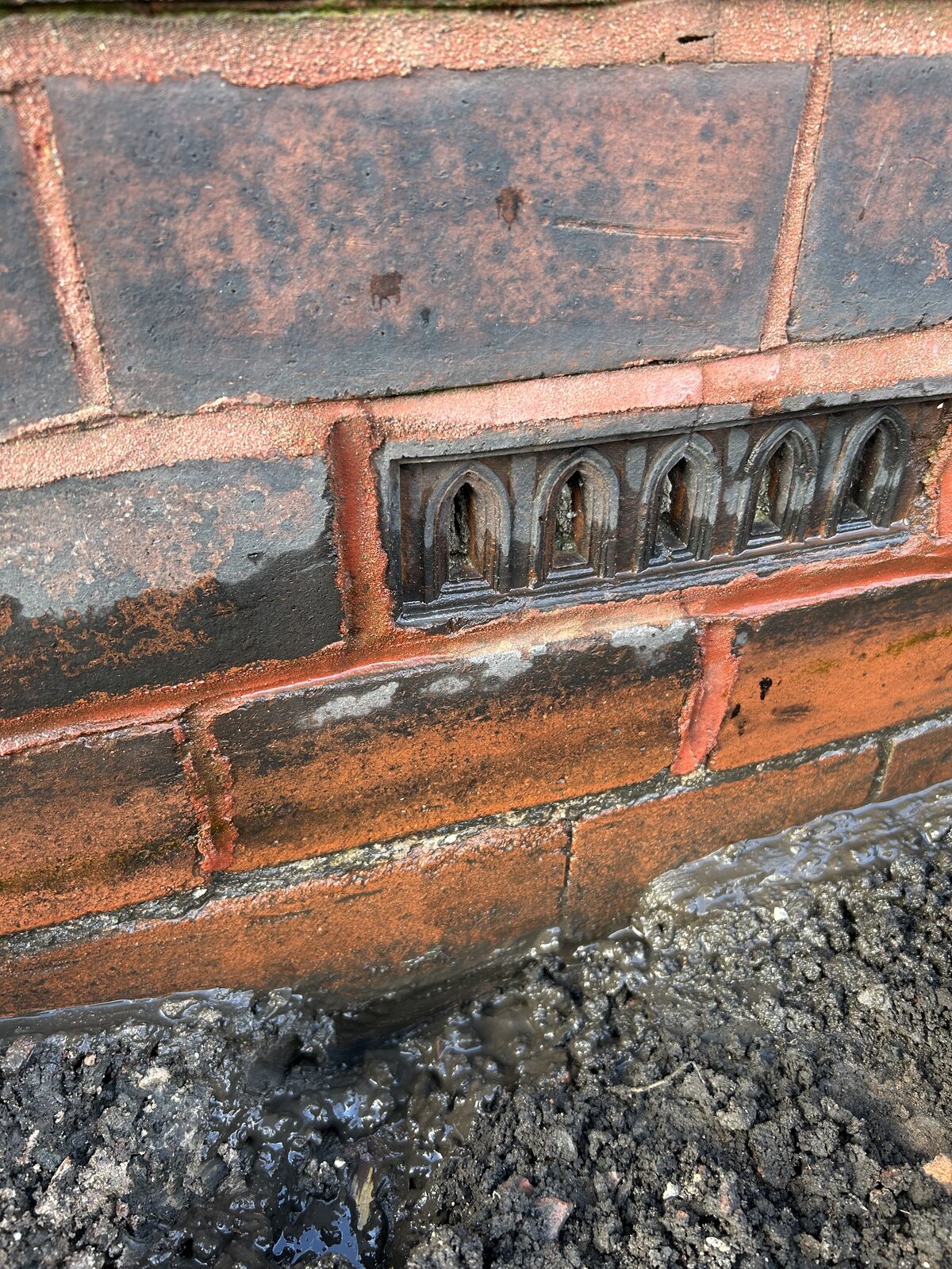 I’ve dug down 4 courses below the internal floor level (a course below the bottom of the original air vent) and still no sign of an original DPC.