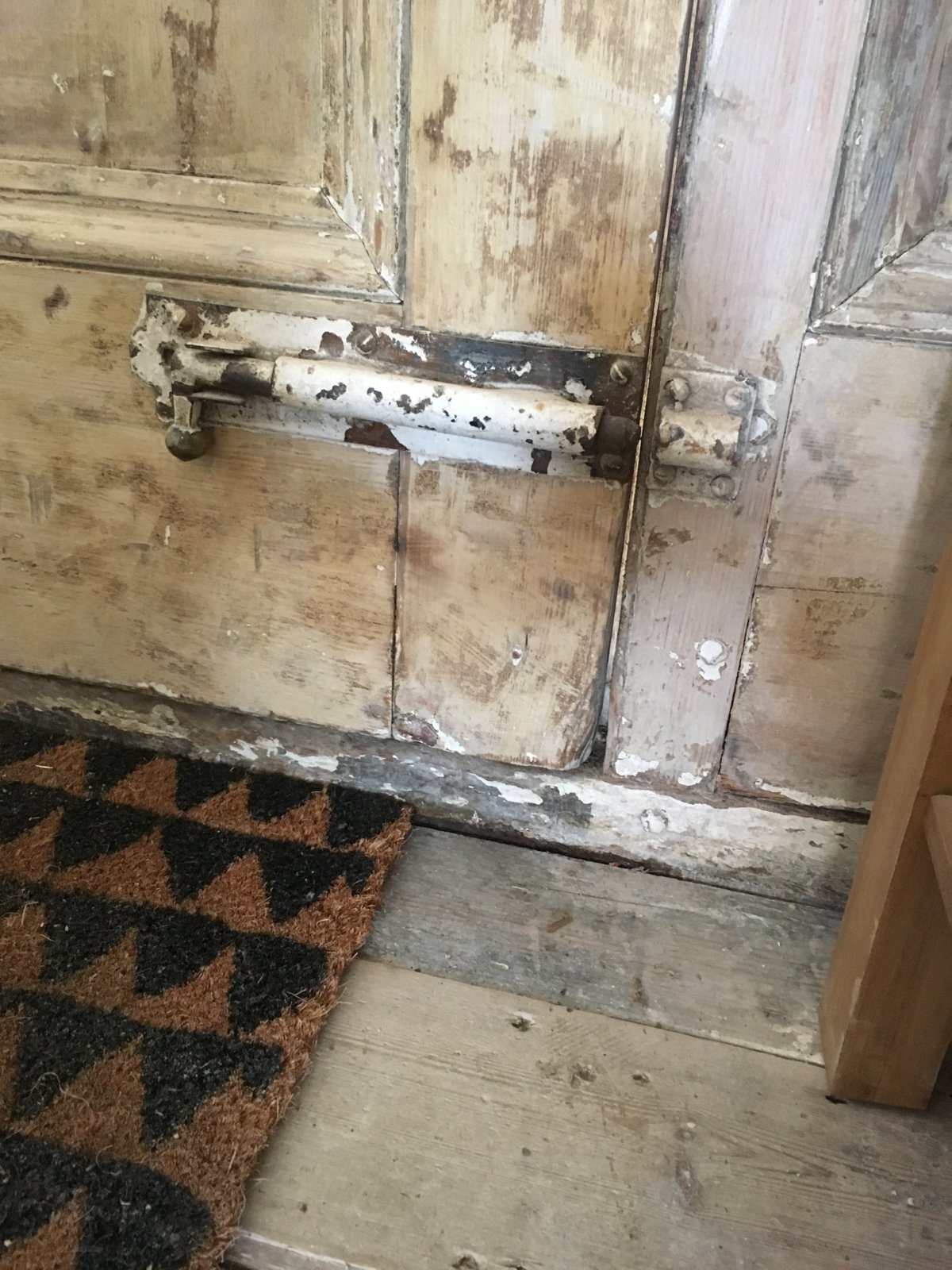 we have a very beautiful Victorian front door that is in overall very good condition, but isn’t fitting tight with the frame at one corner. Having never adjusted a door before I’m reluctant to take out the old hinges until im sure the correct thing to do, but need to sort it out as it’s very draughty. The door fits perfectly along the top and hinge side all the way from top to bottom, but at the handle side is slightly sticking out at the bottom corner to about 50cm up. Somehow I need to pull the bottom corner in. The hinges are old but very sturdy and not lose at all- I can’t tighten any screws. There is a slight wedge shaped gap at the top corner of the same side but it is fitting tight and not letting in air there. Do I need to pull out the top hinge or pull in the bottom. Or something else? Thanks
