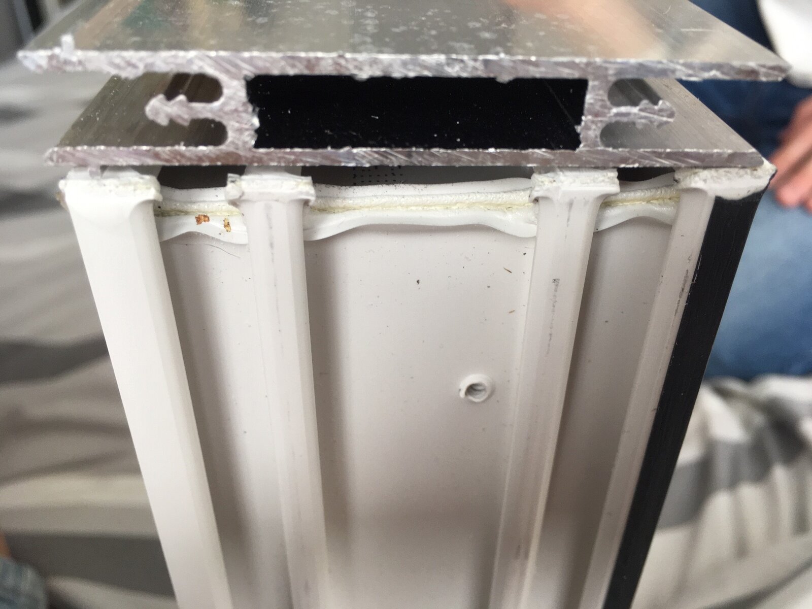 Hi, I have a Solidor door with 1 full length side panel. An aluminium 10mm thick coupler is supplied with plastic trims to cover the jonts. One side of the coupler is smooth/flat and the other has 2 small tongues on each side (sicking out about 2 mm and 4 mm from the edge). I’m not sure which way round the coupler should go, would the smooth side go on the inside or outside?