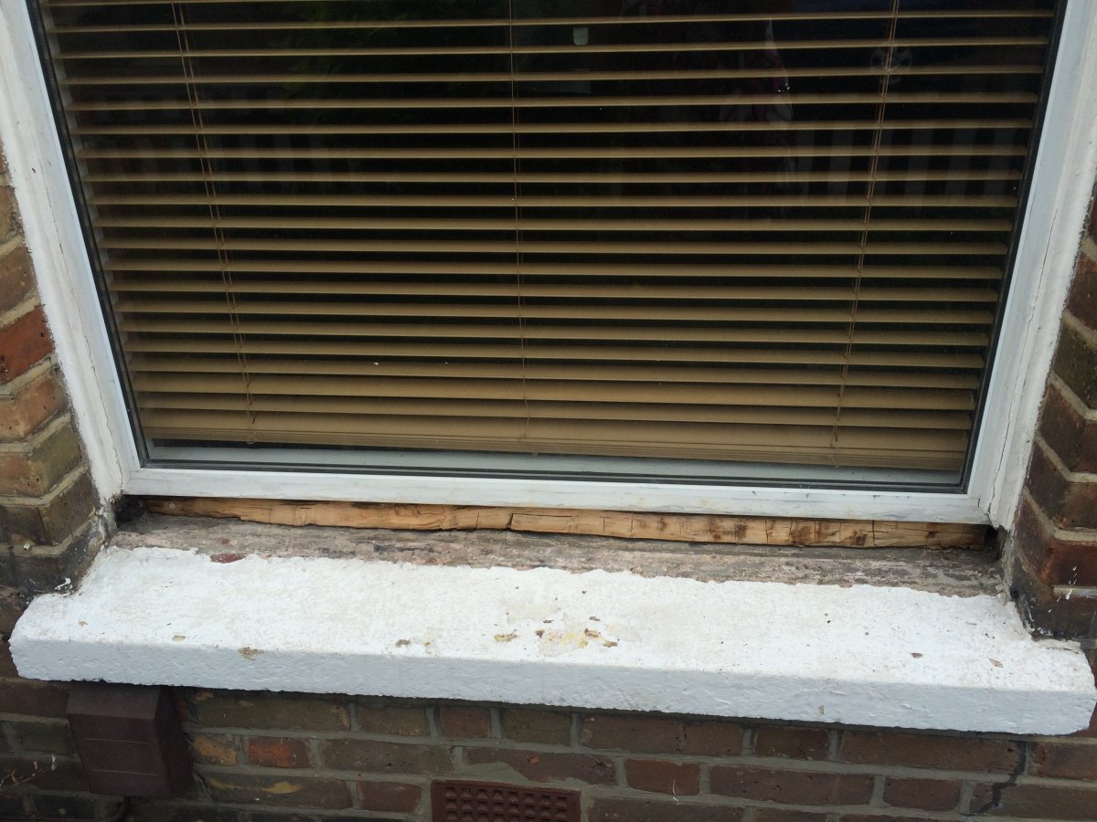 Hi. Years ago I paid a local 'handyman' to fix the rotting wood base under the double glazing. He charged me for replacing the wood with a new hardwood piece and repainting it. It's rotted again so I thought I'd replace it and started hacking it out. I now realise he couldn't have replaced it as it's one deep piece which it runs through to the internal side and that wasn't disturbed at the time.
