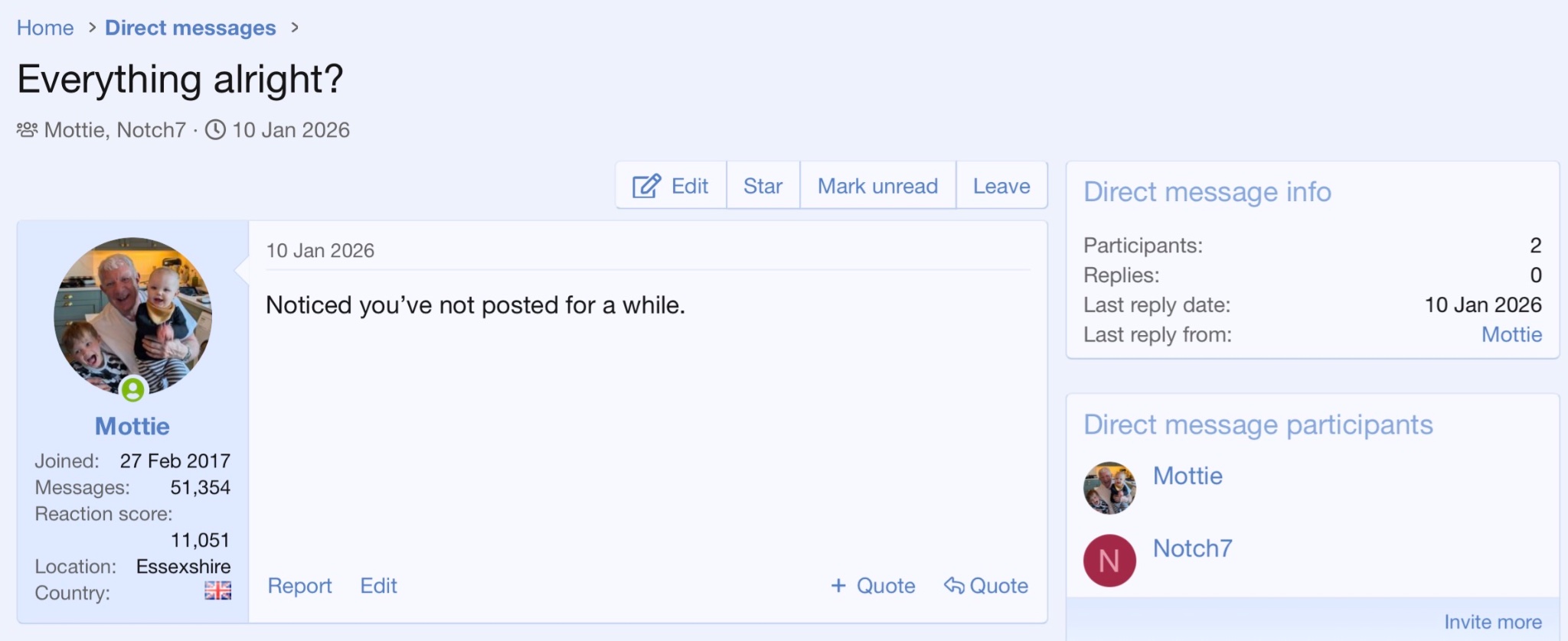 I don’t mate. I’ll change my settings.Tried to PM you last week. Do you not accept pj's?