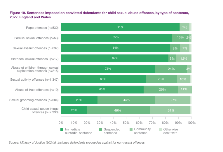 91% of all rape cases 2022/23 received immediate custodial sentences.