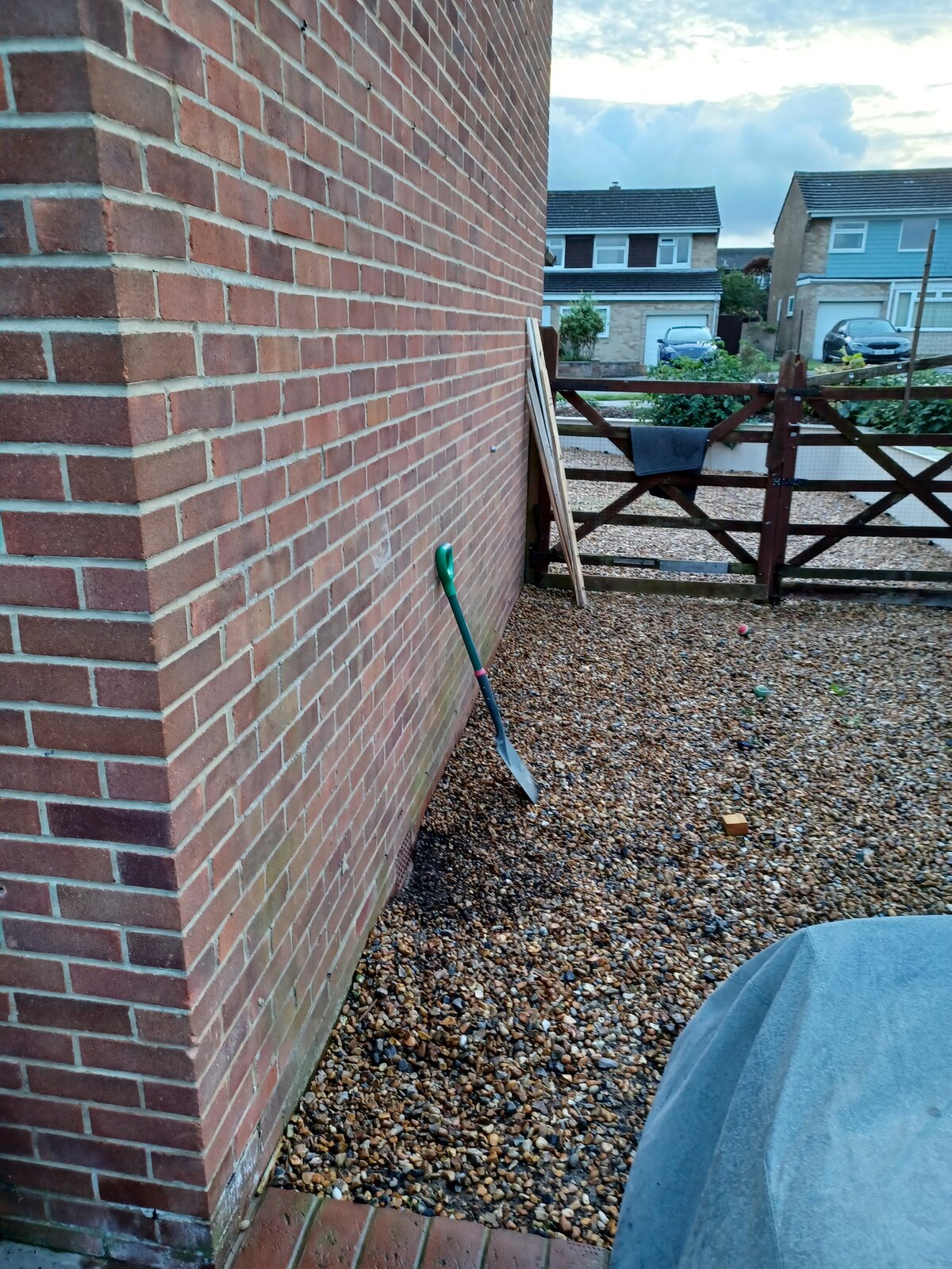 Hi, we have a slight damp issue on the gable end wall of our house. I think the issue is one of the air bricks as part of it is below the gravel of the drive (pictured)
