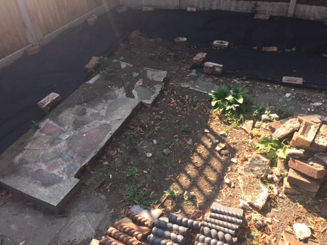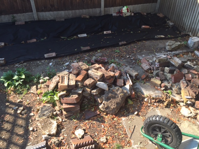 The cabin is 5 x 4 m and I plan make a concrete base pegged out with 6" boards to this size, depth. I want to throw some old bricks into the base, not the garden edging. I understand I shouldn't use to many bricks and I need to wack these down? Should I add some steel re-bar, where can I get this from?