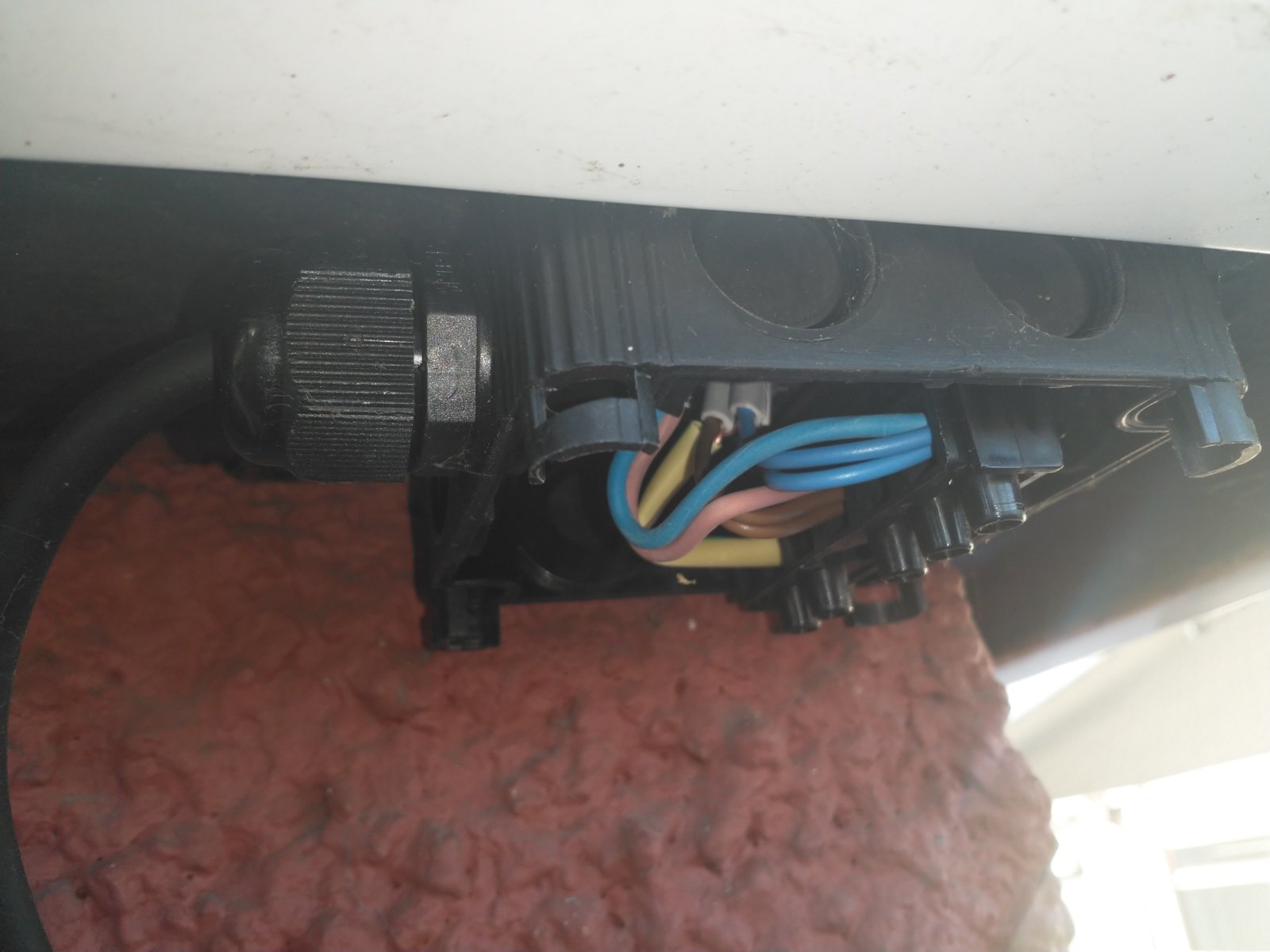 The only terminal block we can see is the one in the Wiska box which someone has screwed to the wall behind one of the lights.