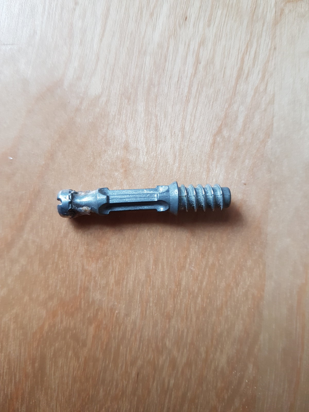 this is to secure a Kitchen drawer face panel to a side panel. One end It screws into the face itself and the long bit goes into a hole in the side panel. It's then secured using a sort of grommet type thing on the side of the side panel, that locks it in place.