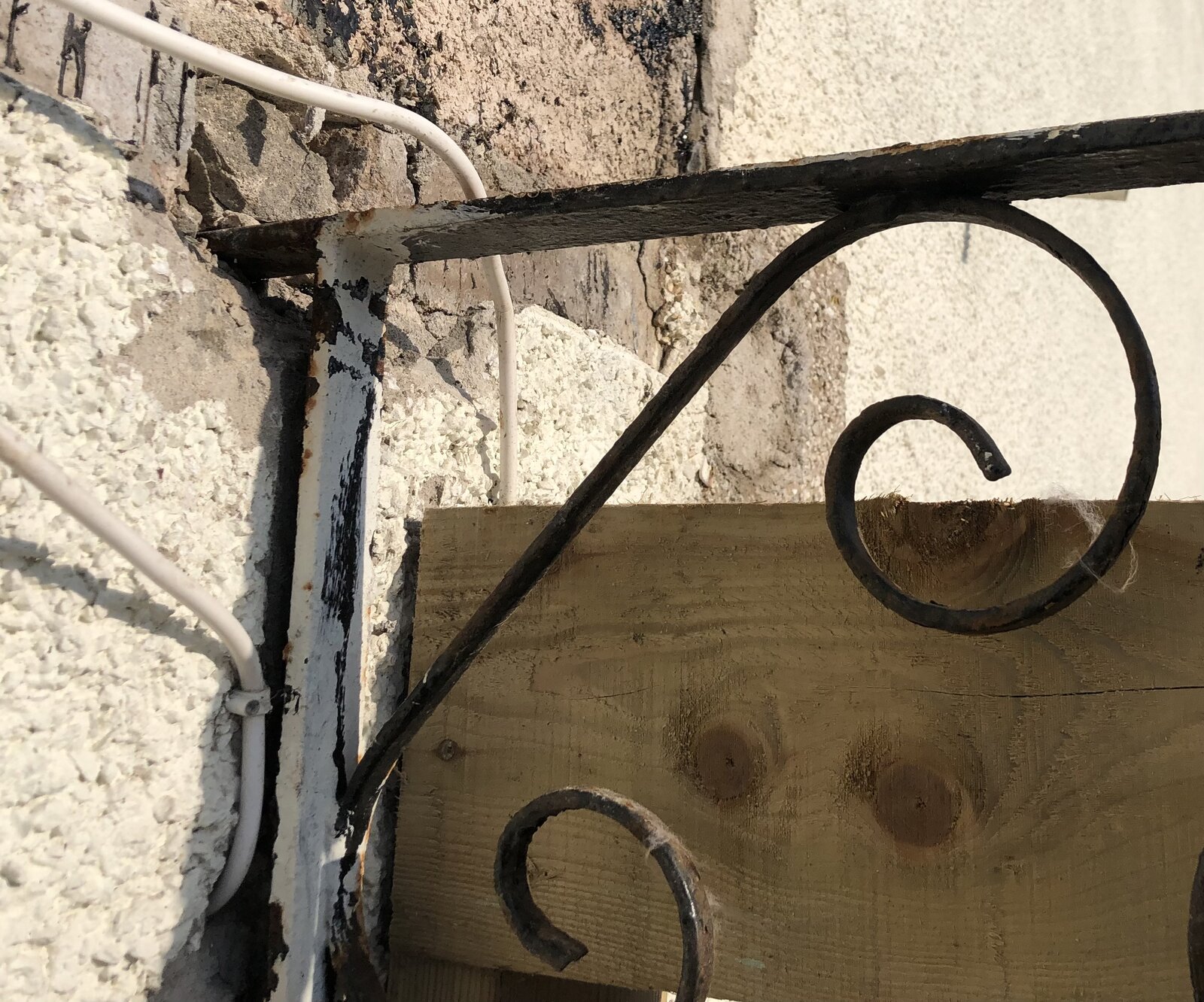 I’m worried that it’s not just a flat section going into wall but then behind that is something or some other shape of it behind the first bricks in the wall and stopping it coming out. Maybe the vertical bracket connected top and bottom like outside one.