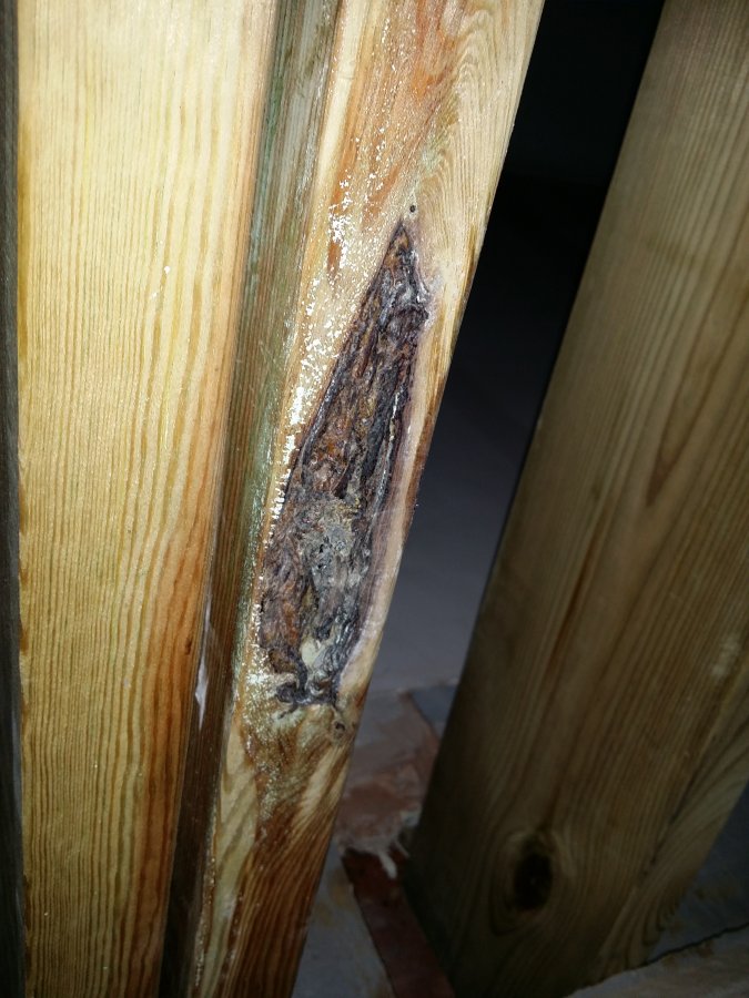 Got my brand new kiln dried, regularised C24 2" × 7" joists today, and after putting one of them up I noticed the below on it: