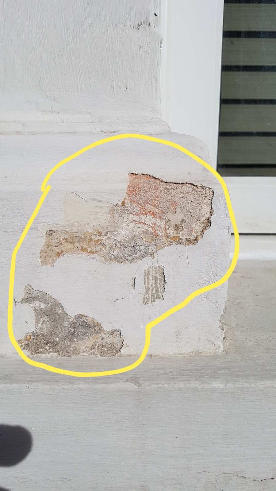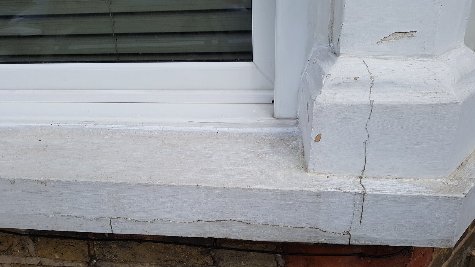 Hi guys. With 80 grit paper and a rubber sanding block I sanded down all the paint on the masonry around my front windows. I've bought some Touprelith F to fill some cracks and bare patches before painting. I opened the cracks a little more with my filler knife. The bare patches are where I removed any flaking paint. The bare patches are shallow, maybe 1mm or so, so I guess I better not mix the filler too runny or it'll just run down.