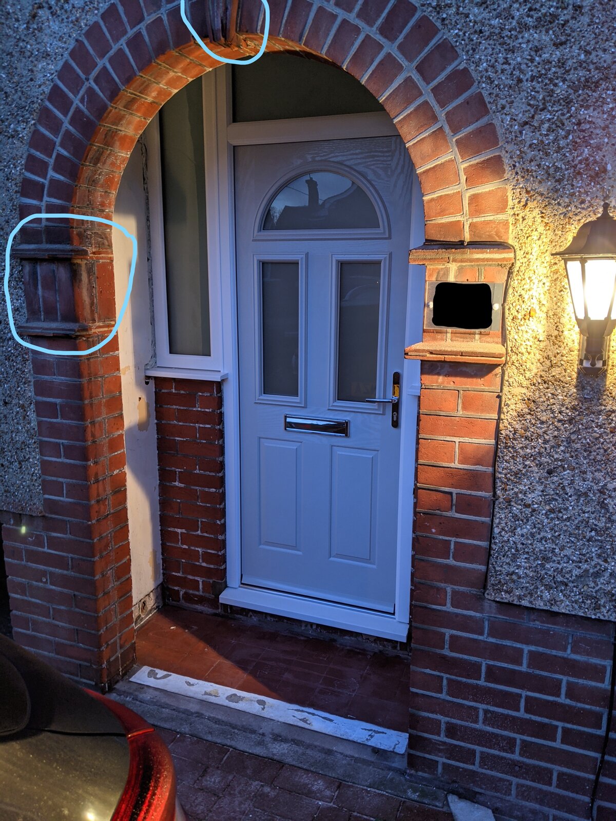 As you can see from the photos the thin decorative bricks have been cut away to make way for the door which has since been removed and I would like to refurbish the arch to it's original state.
