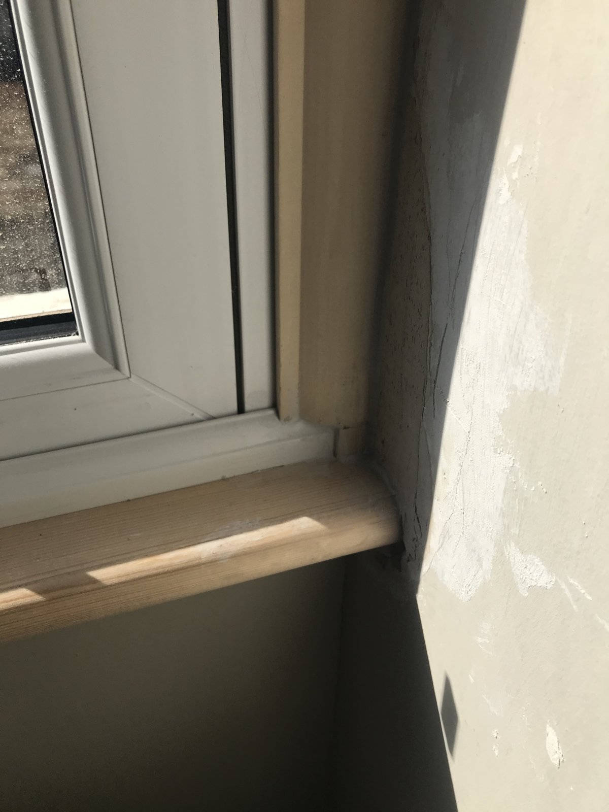 4.The wood architrave has in part been attached directly to the UPVC sash frame using Mitre Fast Activator. I checked with Everbuild and they advise that this product would permanently stain the UPVC (PVCu Acti-Spray would have not). Builder advised Mitre Fast Activator is acceptable to use.