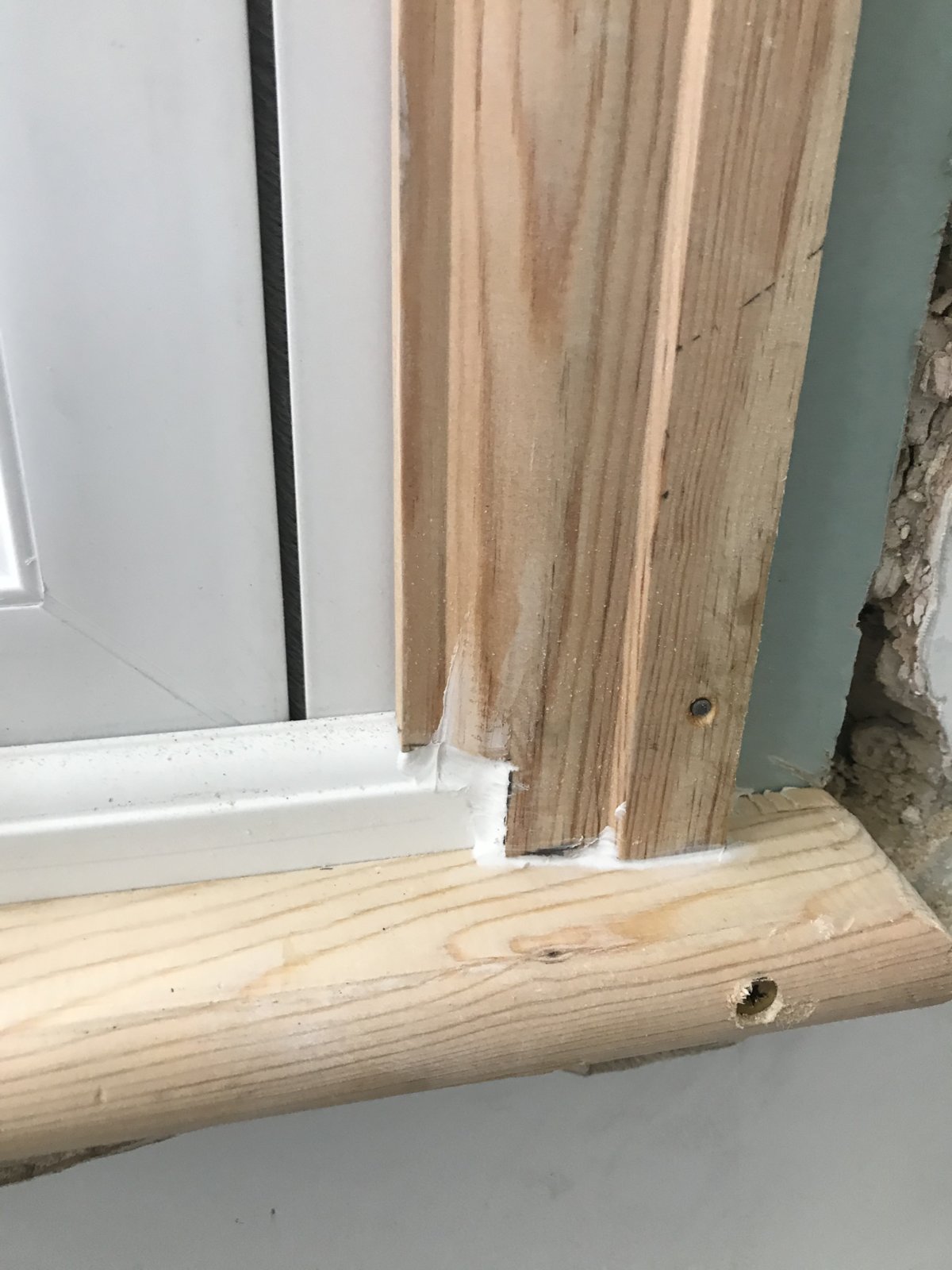 2. I understood that architrave was to butt up against the side of the bottom bar. Builder advised this is incorrect as architrave trim has to be put over the UPVC frame (as shown in pics) in case of natural movement.