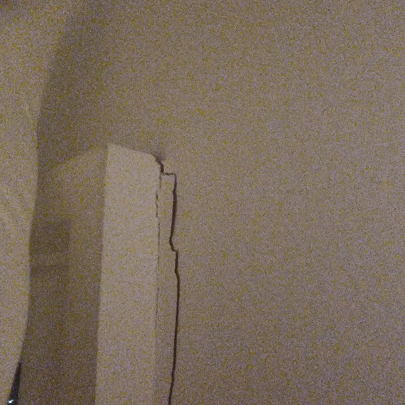 Every night for a while now I've heard a little popping noise every hour or so so last night I stood up on a chair to have a look and can see that the architrave is coming away from the wall at the top and there are cracks around the top corners.