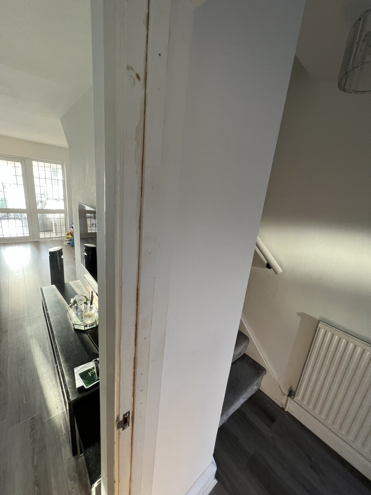 Hi the little strip of wood that stops the door came off so i used some panel pins but they look horrible and the head of nail shows badly.