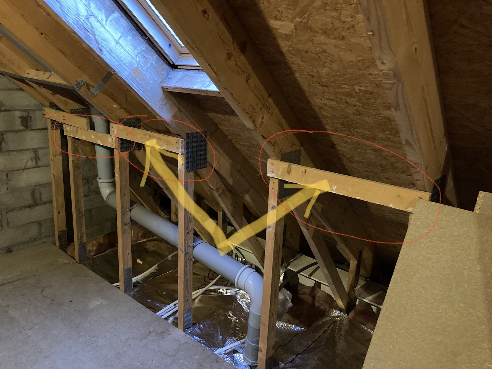 I am trying to make more space in my loft and install some doors to cover clutter located in deeper corners of my loft and I wonder if those "binders" pointed in picture are necessary for loft integrity. They don't look solid at all and it could be helpful if I could removed them.