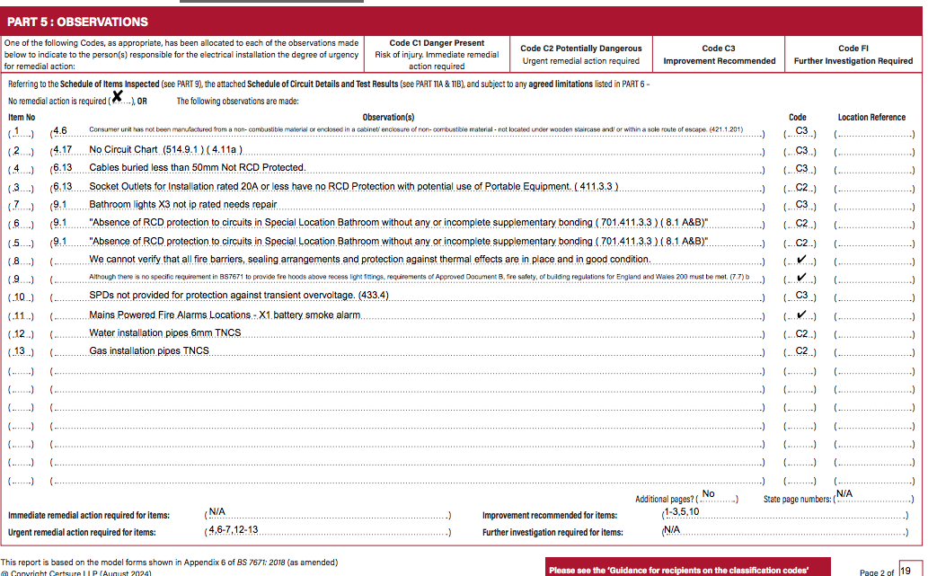 I attach the EICR findings.