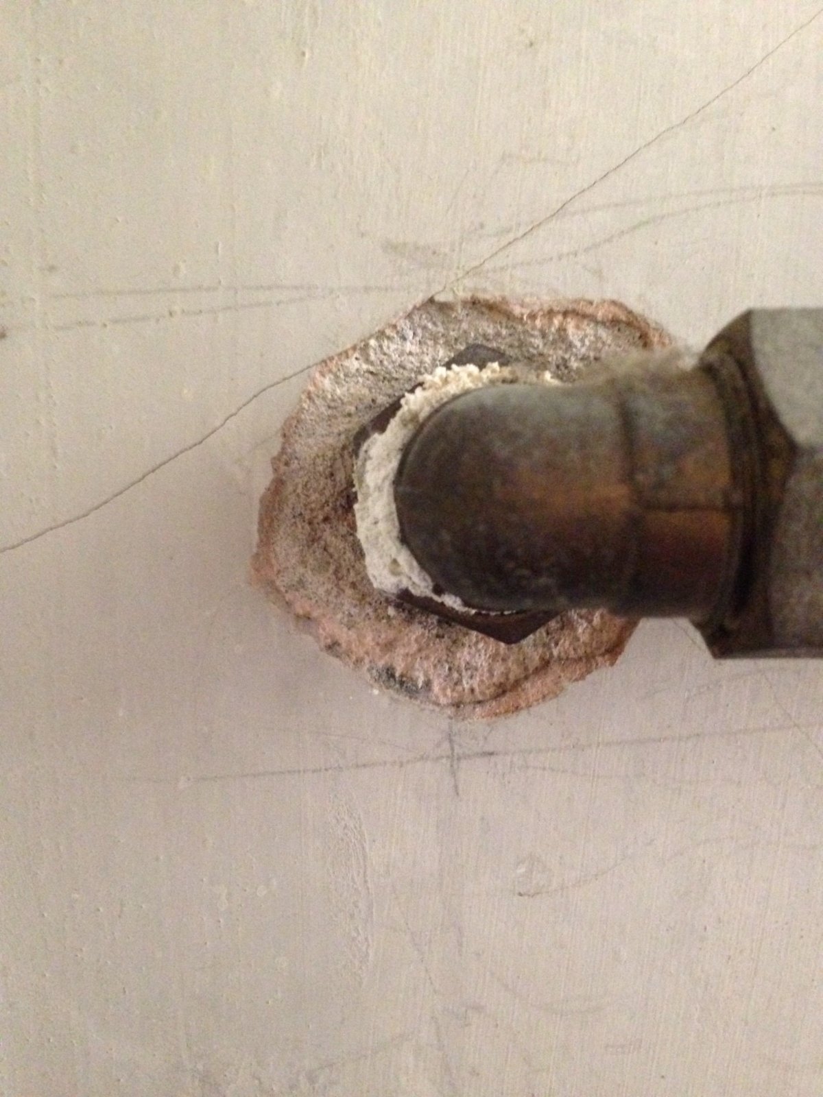 I then noticed a white substance near the joint going into the wall, see pictures.
