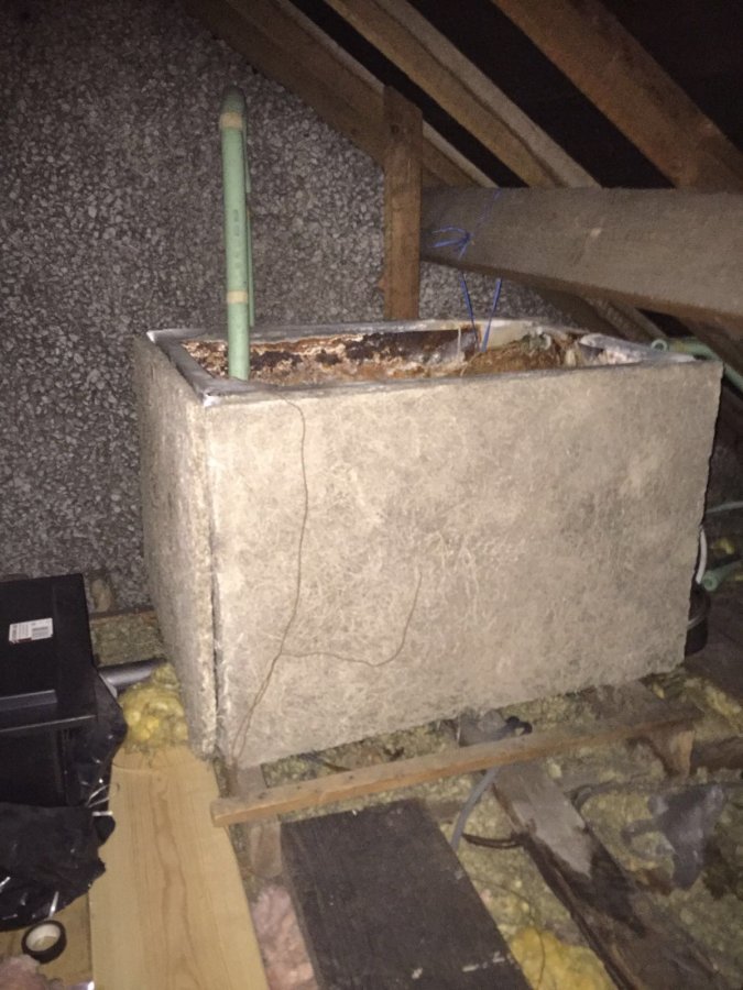 Ive currently got a leak in my cold water tank and had a plumber out to have a look. He said he cant do anything at the minute as it is surrounded by asbestos boards. I have spoken to an asbestos removal company who say it looks like it may not be. Does anyone have any suggestions please before I have it tested?