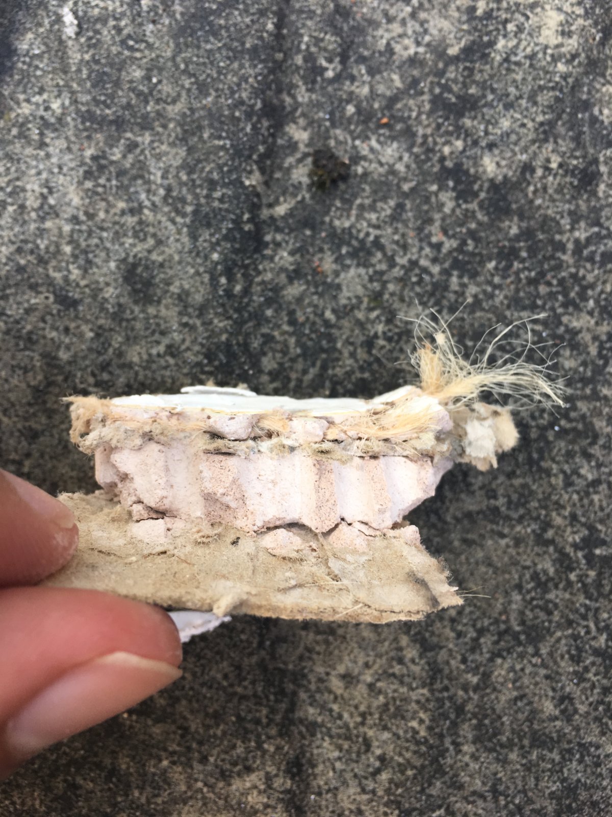 From peoples experience does this look like plasterboard, and are those fibres innocent?