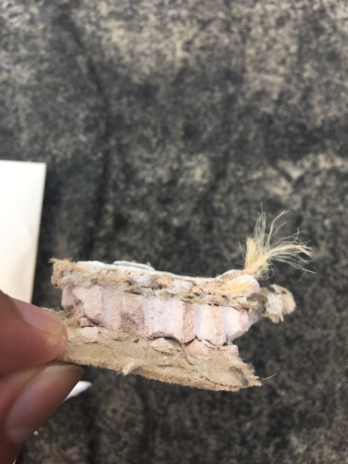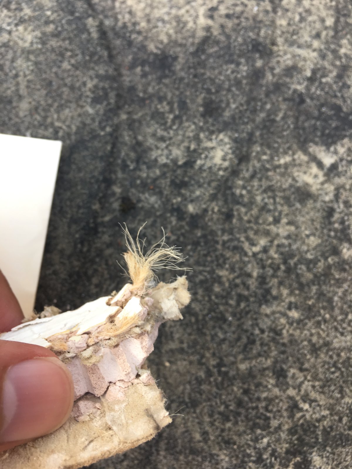 I have attached photos from a small piece which was removed carefully. I am going to send this off to a lab where I hope they will rule out asbestos in it?
