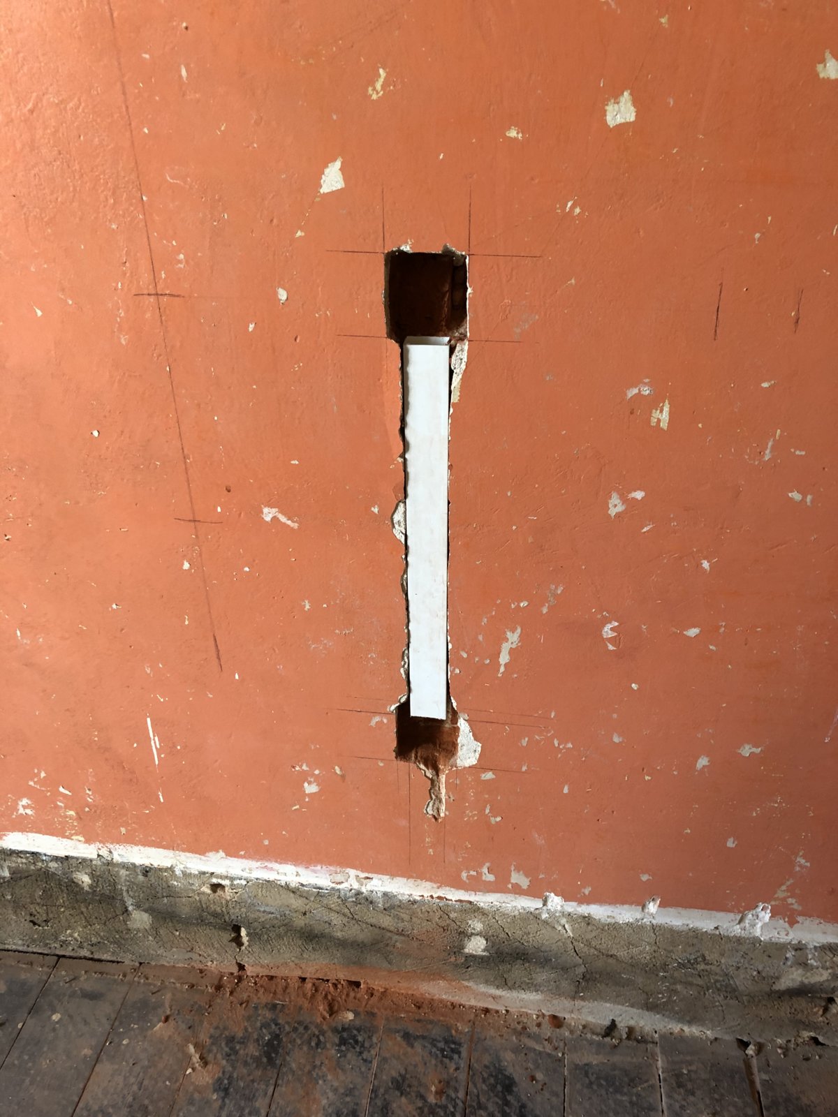I’ve made the attached channel to carry AV cables from a wall-mounted TV to a unit below, to be finished using brush face plates. I was expecting to put standard back boxes in, but all the ones I can find have a left and right hole rather than a central one.