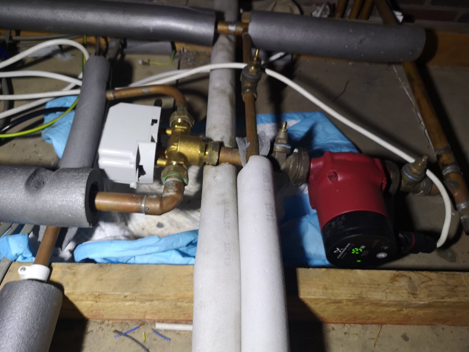 I went up into their loft and took a look and the pictures I have attached here. I noticed their pump was on speed 3 so I turned it done to speed 2 and that hasn't helped. When I was up there in the loft I watched the diverter Valve move across and then bang and shake as it moved to water.