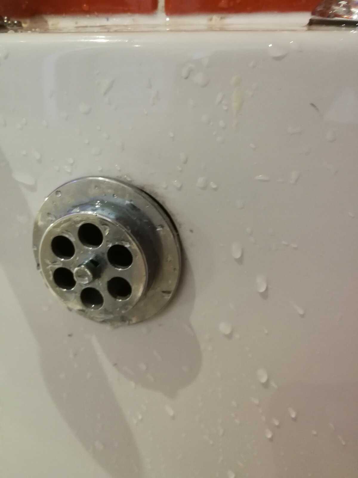 LOOSE OVERFLOW ONBATH THAT HAS BEEN FULLY TILED IN. My lad bought a wee house and when I was cleaning the bath I discovered the overflow was loose.