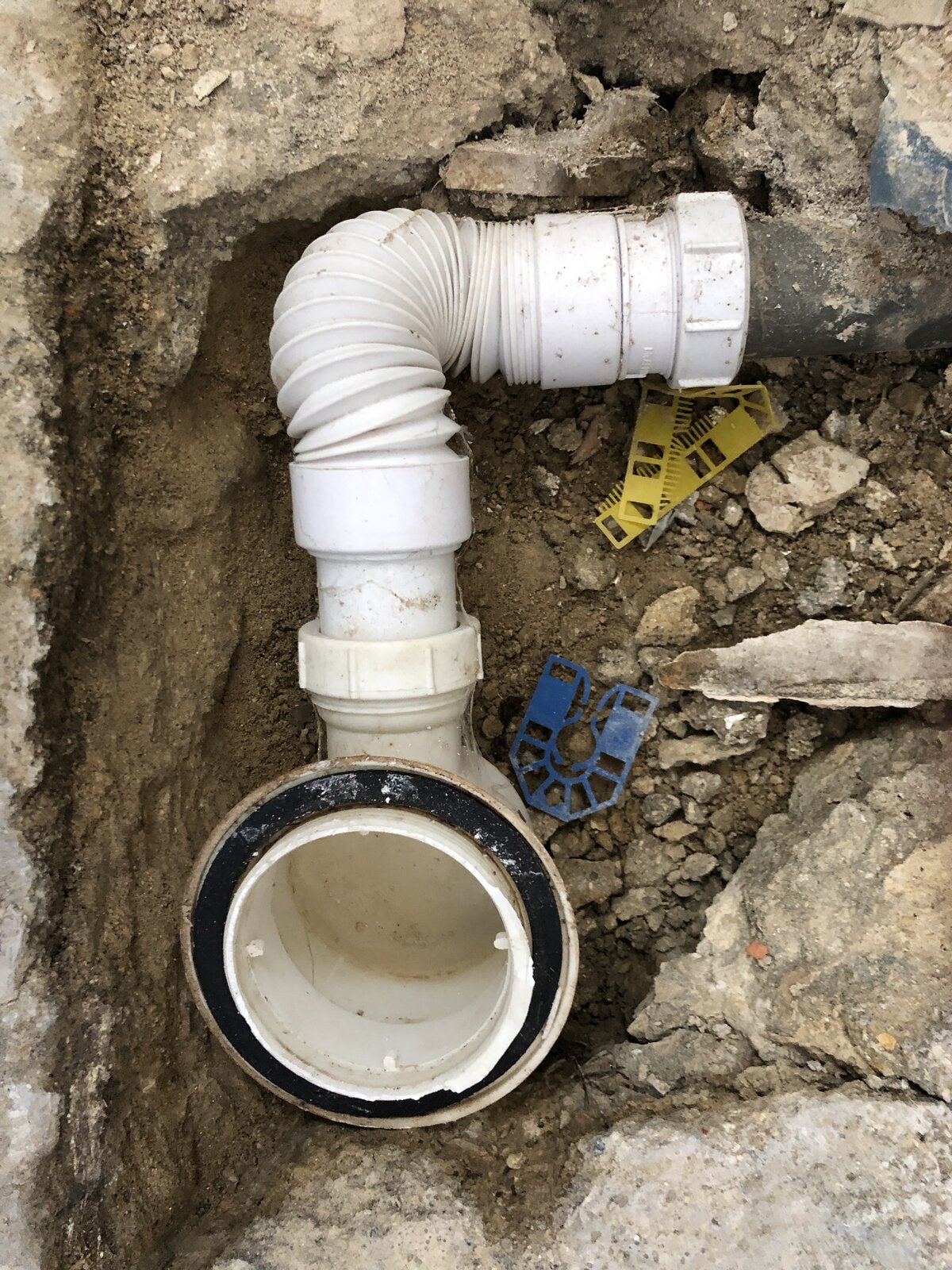 So looking at the pic from the rigid pipe at the top I put an elbow then a pipe attached to that then another elbow at the bottom. That elbow at the bottom can I have it facing a little up (so towards the bath base) as I need to add a waste pipe on the other side coming down into it. Hope that makes sense.