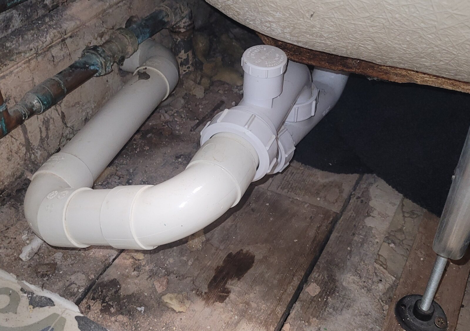 the current set up blocks the bath panel from going flush and is causing me issues I need to rectify but as you can see if I turned the trap backwards it would be almost touching the walls and I wouldnt be able to fit a pipe to reach the outlet any suggestions for me to make this actually all fit under the bath tub !
