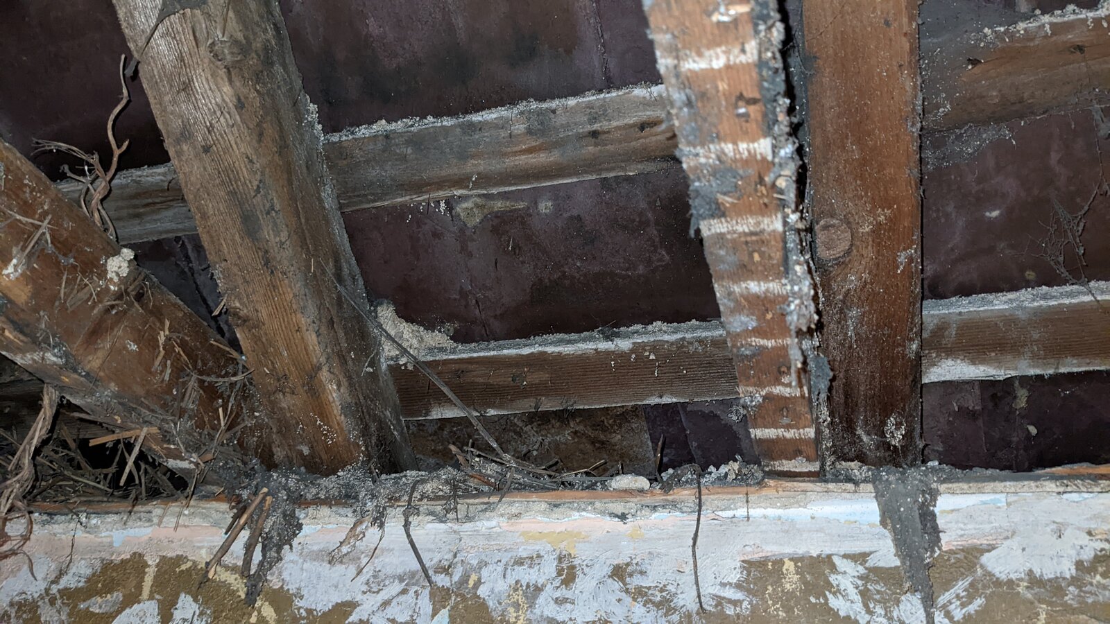 And here's where those ceiling joists meet the lowest part of the roof, near the gutter:
