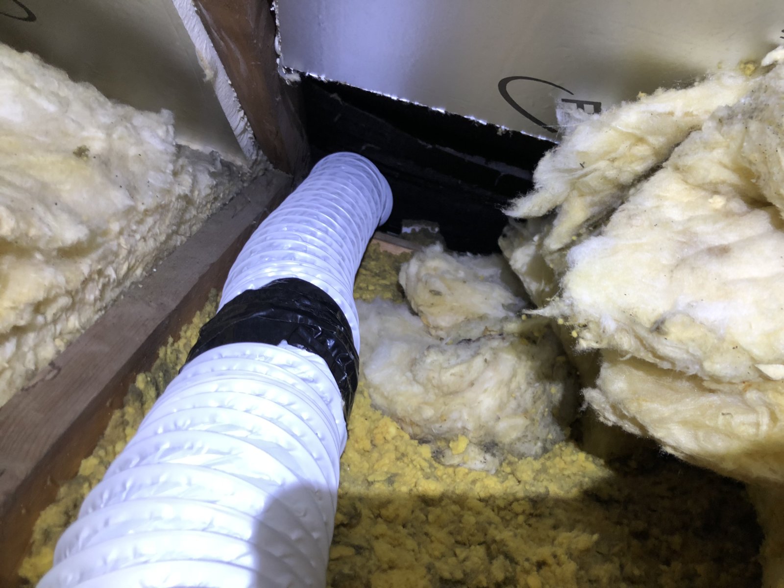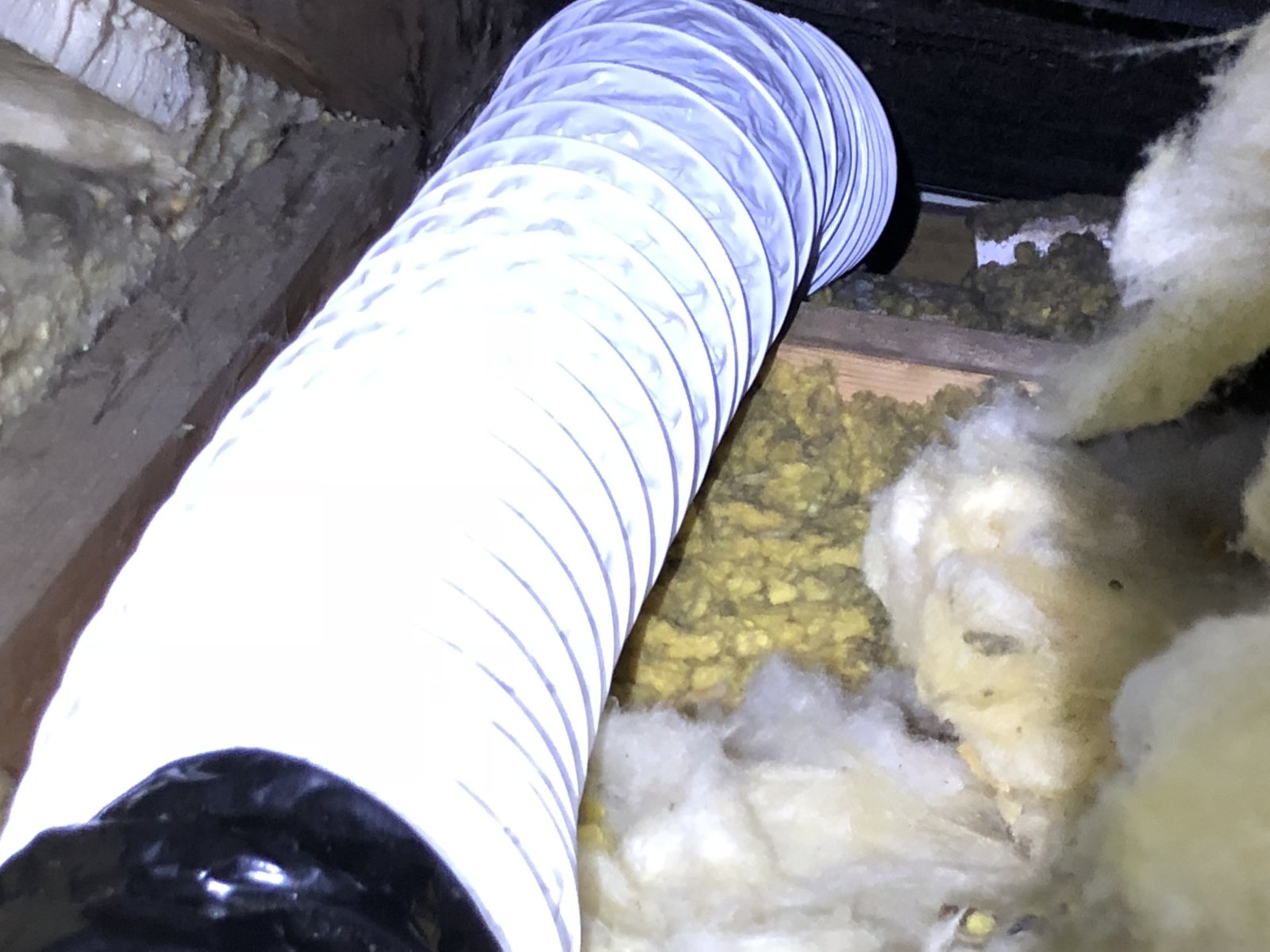 Here are some pics, they're not great but you might be able to see the ducting is running over towards the soffit vents but I'd say its a good 30 cm from the soffit boards and not sure where the nearest vent is. Its then just had insulation pushed up to it.
