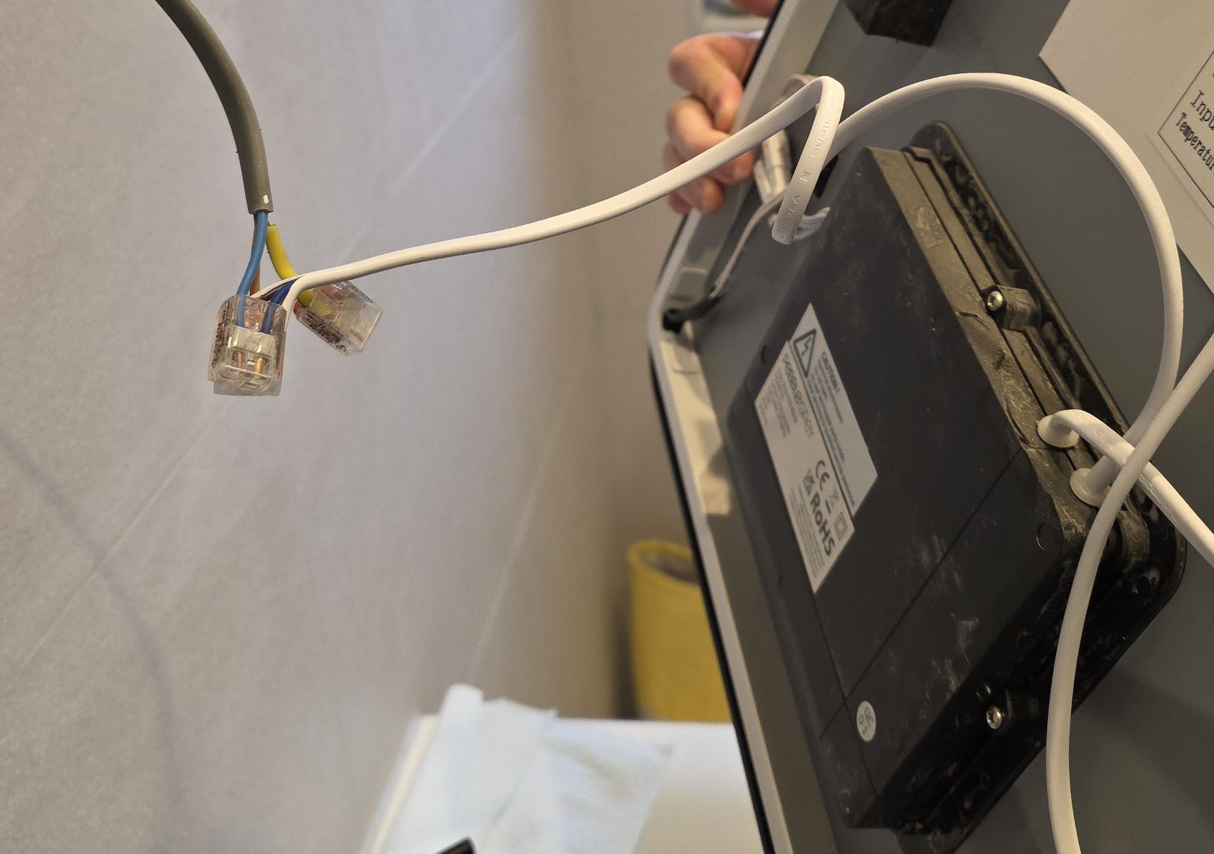 We had our bathroom renovated a few months ago which included an electrician fitting a heated bathroom mirror. I had reasons to unhook it from the wall recently and discovered that the join between t&e and the mirror 2 core flex has been made with Wagos that are exposed. I won't be calling the electrician back.