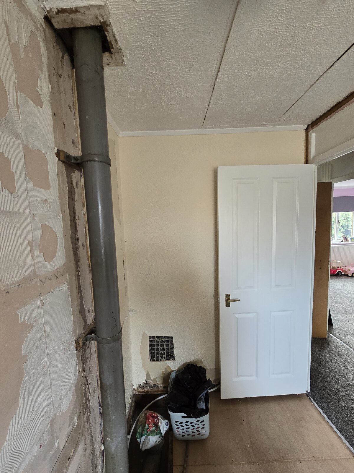 As you can see it's a small 3m long x 1.5m wide bathroom so I was thinking of getting rid of the cupboard and making the bathroom bigger. This would get rid of the odd alcove in my sons room and also get rid of the window light doorways which have odd sized openings too I'll add and let me have 1 main door on the landing for the bathroom.
