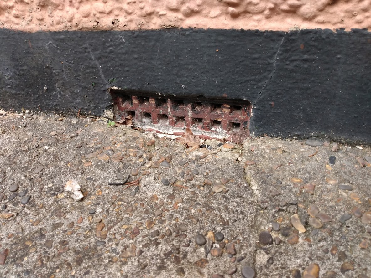 Started lifting floorboards and removed some skirting. Usual: rotten joists, rotten skirting boards, blocked air bricks, radiator pipes with no insulation, and about an inch of dirt. Need to replace 2 joists nearest the external wall, and some of the sleeper wall timbers (looks like they have been replaced once before!). There is no air brick in this room (totally covered externally) so I will have 2 new added when the drainage is done.