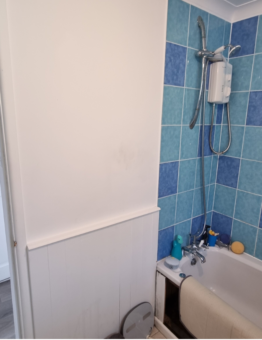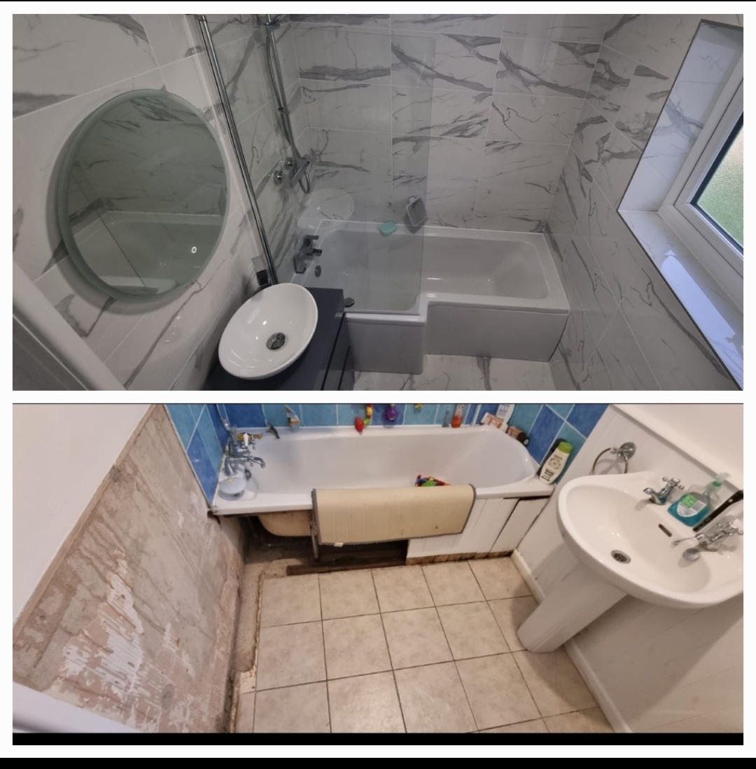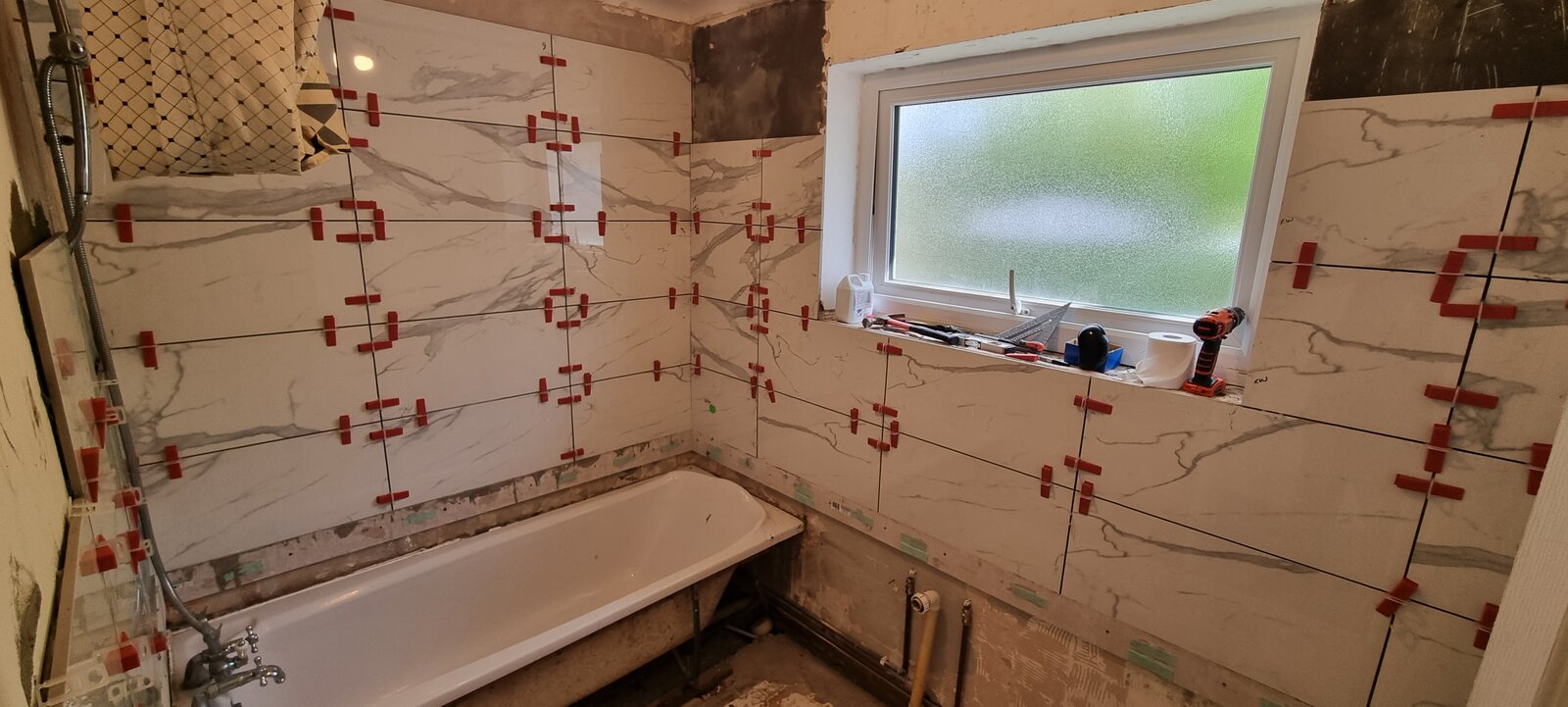 Then looking to recruit a tiler to tile the wall which is currently clad (at roughly waist height) and then full height in the bath area.