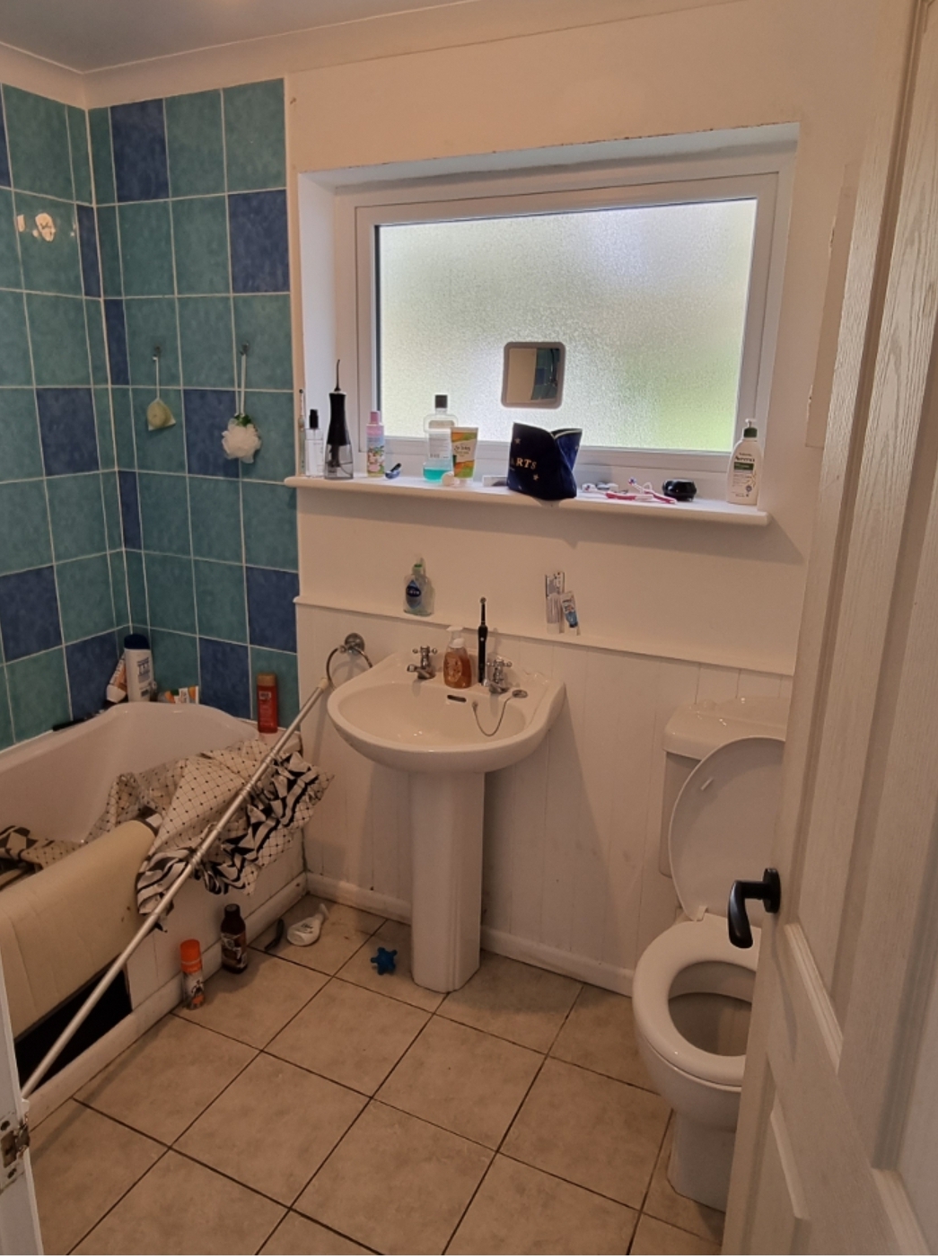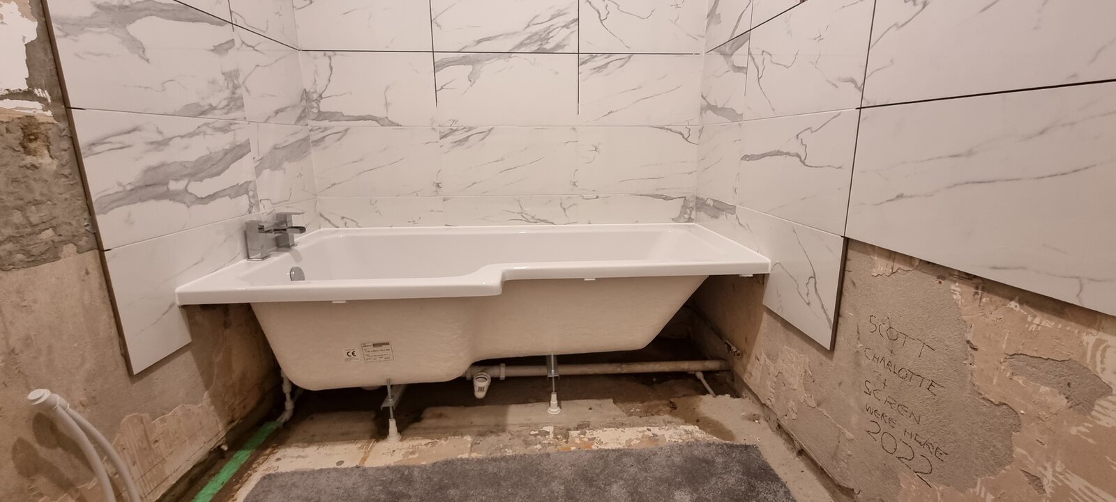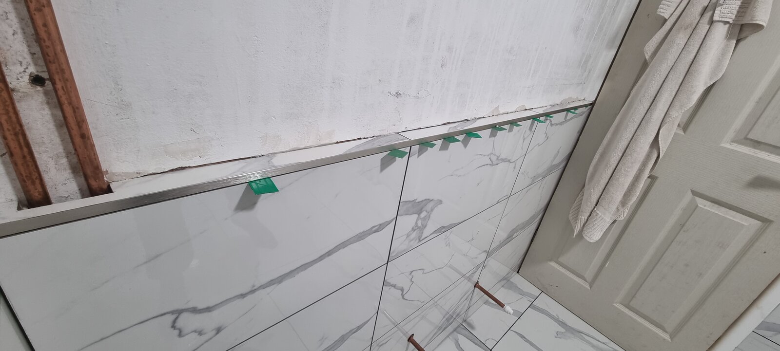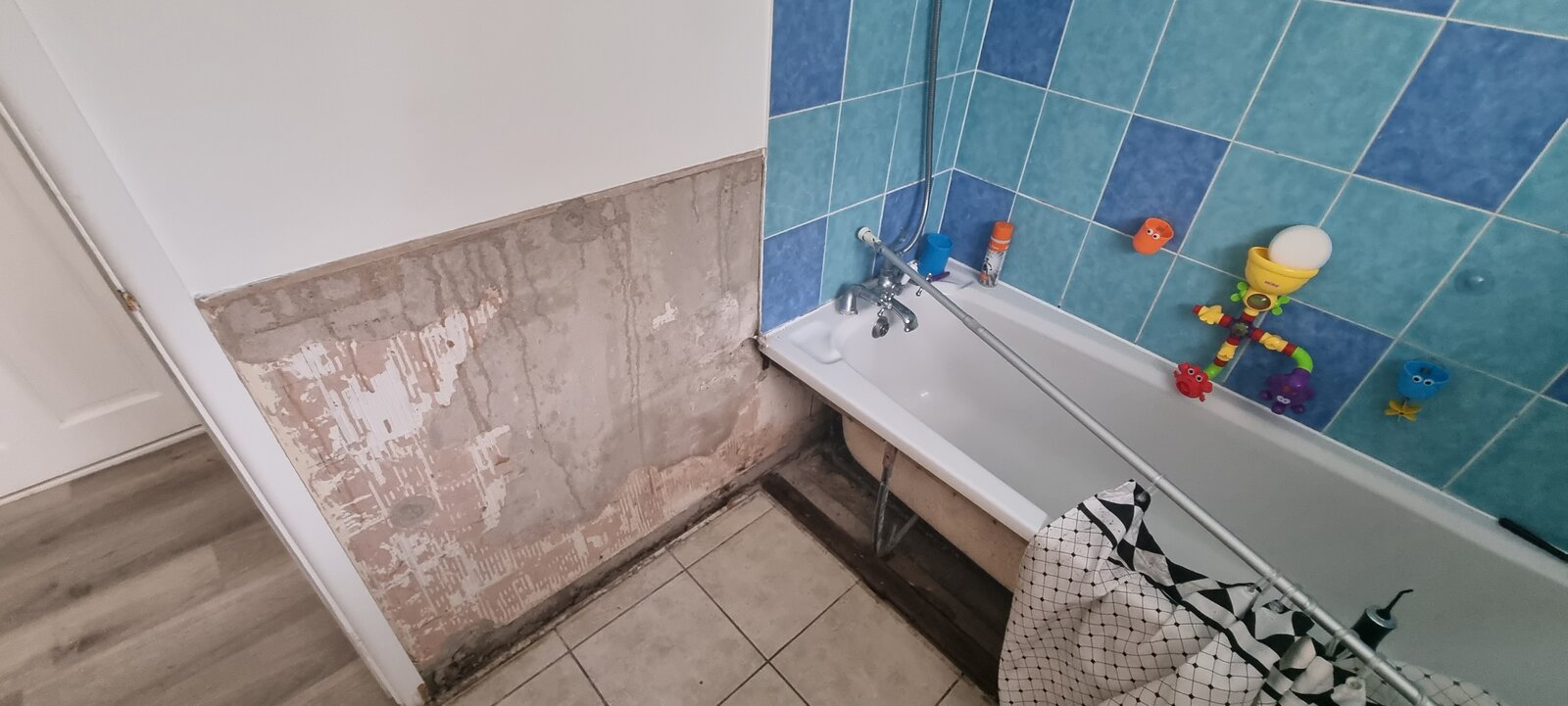Then looking to recruit a tiler to tile the wall which is currently clad (at roughly waist height) and then full height in the bath area.