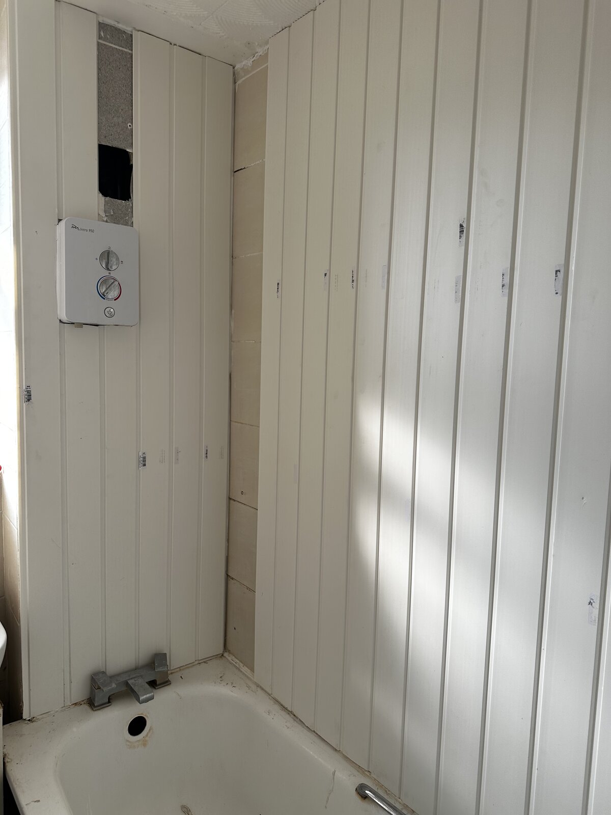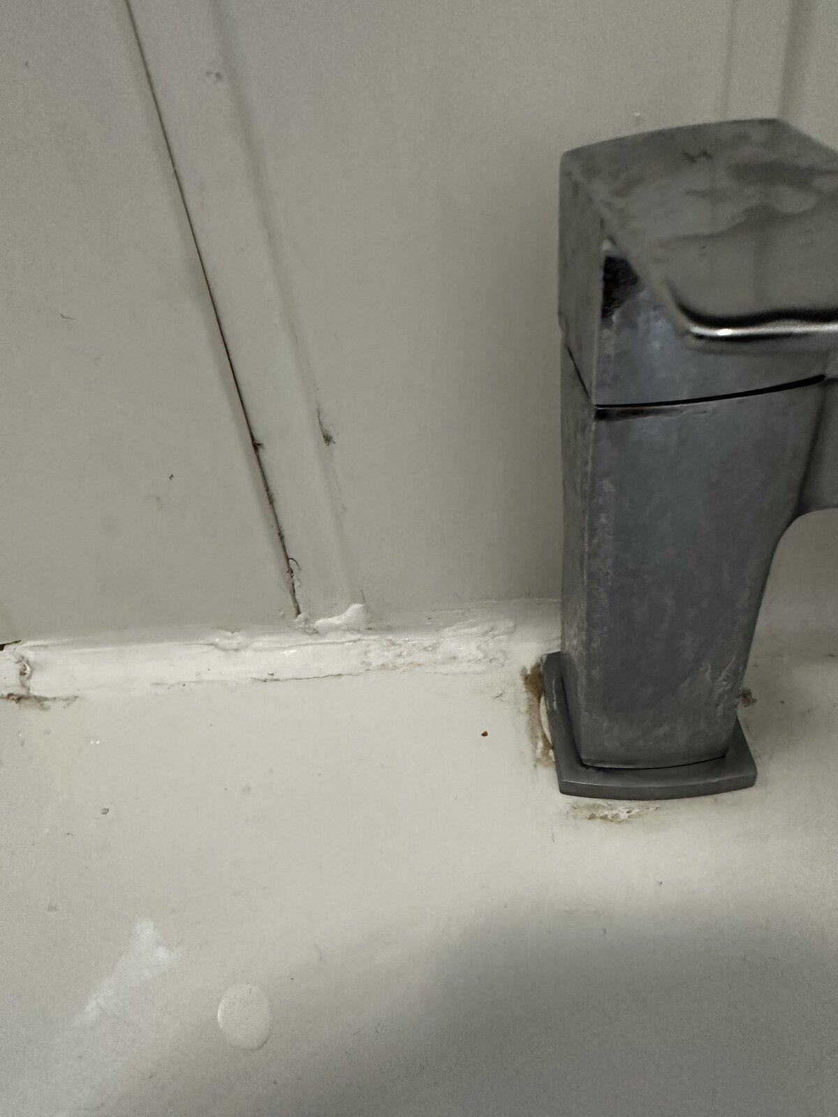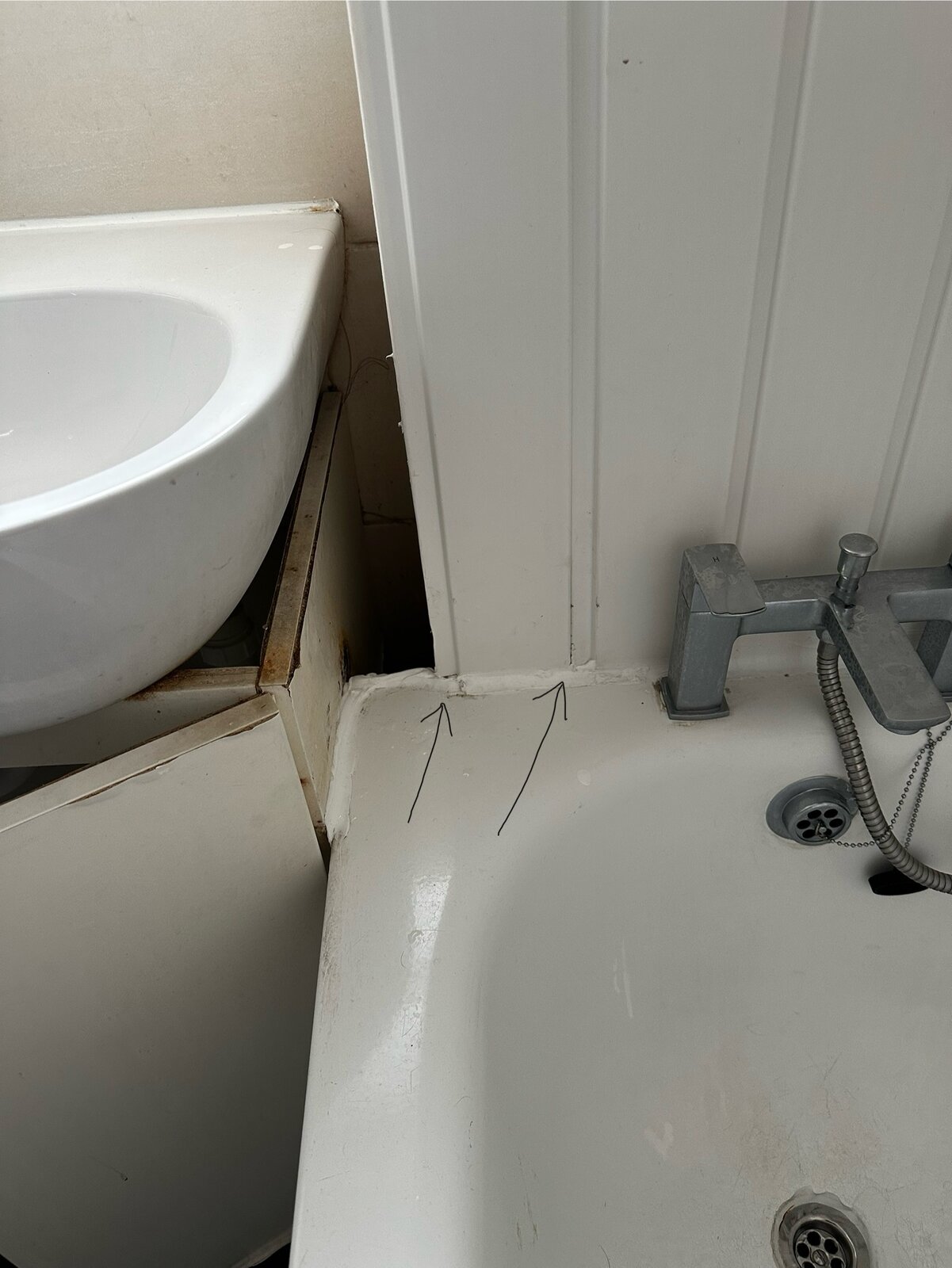 We had a Plumber/Builder putting wall cladding in our bathroom wall on top of old tiles. Open closer inspection of the work, I noticed there is some gaps near the bath taps. The reason for cladding and other work in the bath,was that there was a leak from the bath when people were using the shower, going downstairs.