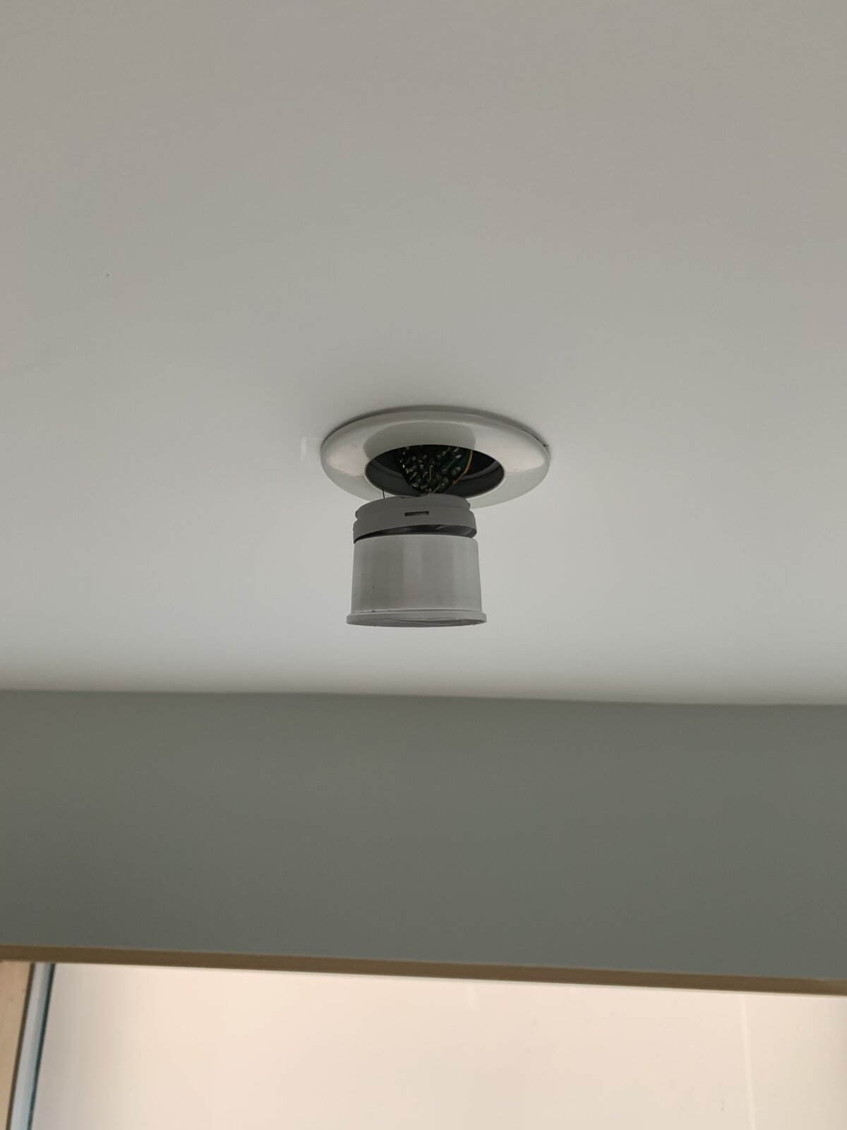 You need to take that bezel off and the whole fitting should then pull down but be careful of the retaining springs inside the ceiling. They hurt when they snap against your fingers.