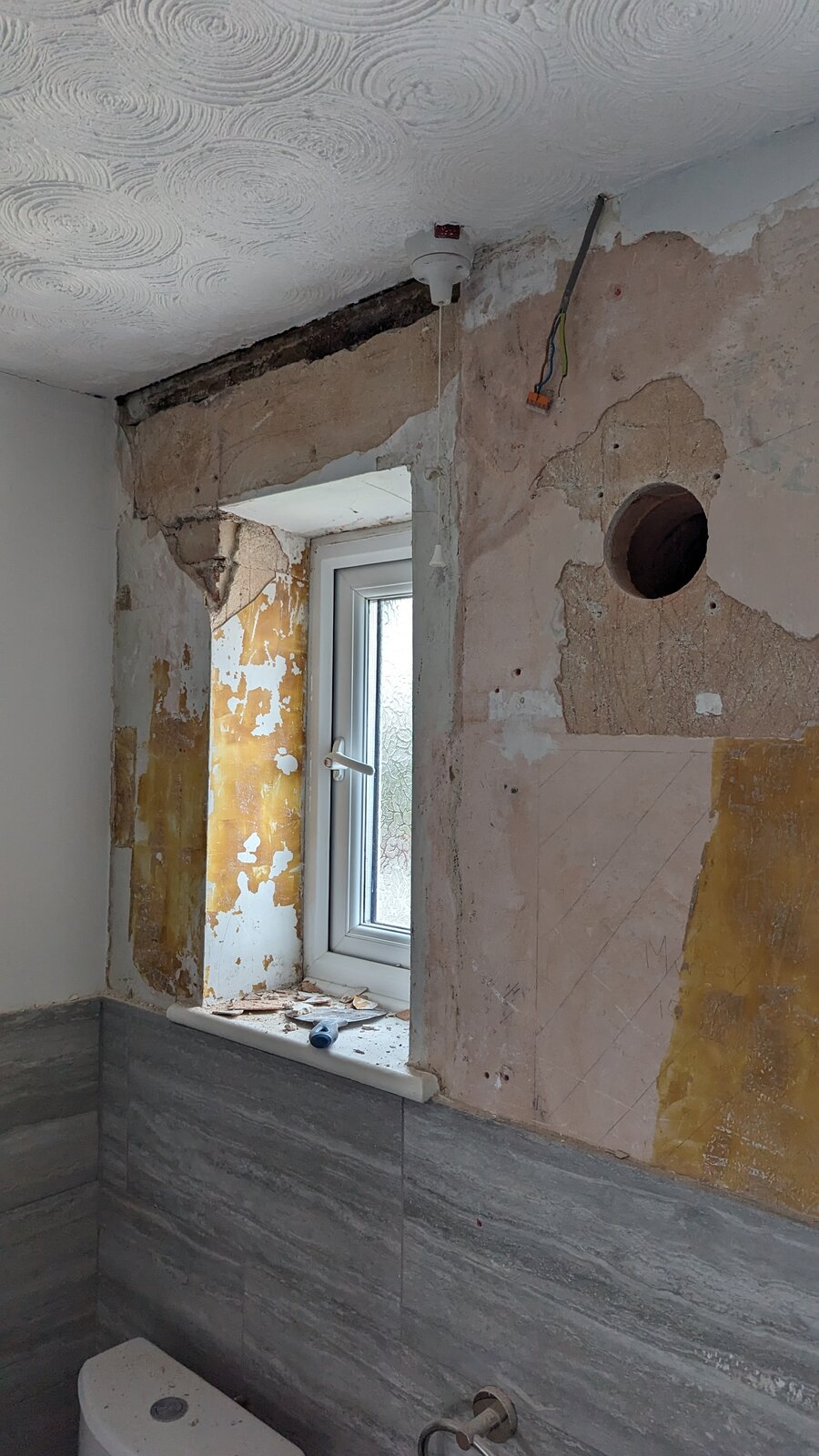 I'm looking at sorting the walls out in our bathroom as the plaster was all blown. I wanted to leave the tiles in place as they're all okay but just replace the plaster around them