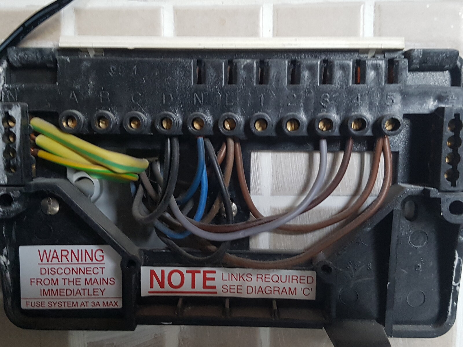 Additional wires that I assume come from the hot water tank thermostat which are black, grey, brown and blue.