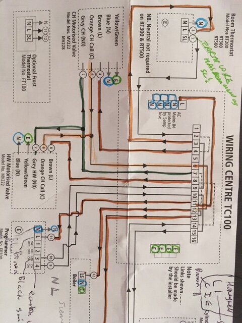 Hi Ian I’ve uploaded the pics of the old wiring, brown board on back, and the new wiring and the diagram that I used, I’ve written over it, but you can see that I’ve got both orange wires sharing the same slot, when you say test with neutral do you mean any of the neutral wires? Will a multimeter help when both are slotted together? I may need to take some brave pills before considering the multimeter as I’m sure some wires are switched lives that haven’t had brown sleeves added, I’ve stuck bits of red electrical tape over those but I can’t be 100% sure this thing is wired properly. It’s very odd that despite wiring the box from scratch it has an almost identical fault to before. Gas is on to the boiler, it was only turned off to the fire front with no labels and like I say he wouldn’t have said anything if I hadn’t wanted to double check the fire was okay to use