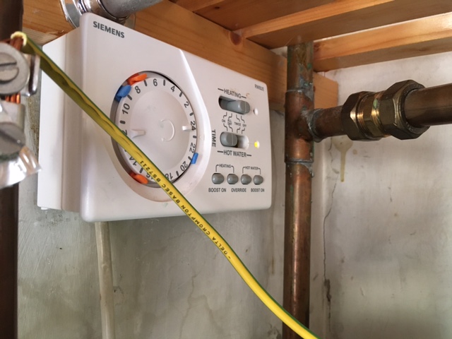 This might be the time to add that when I re-wired the box there were 2 cables which disappeared under the floorboards that I couldn’t trace, one to the boiler and one to the room thermostat. The boiler cable seemed thinner where I could see it in the room below so at the box I treated the fatter cable as the room stat and thinner one as the boiler, there’s a possibility I’ve got these the wrong way round