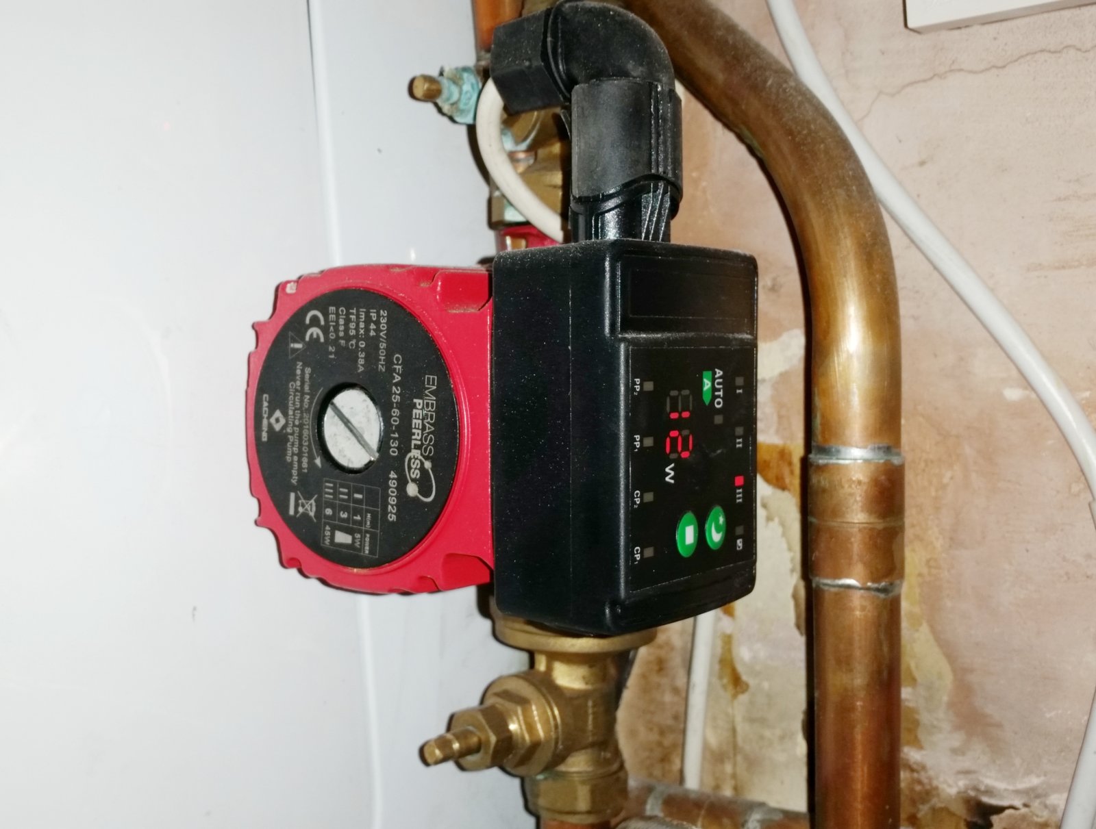 When switching on either the hot water or heating at the control panel. The pump initially starts up but only reaches around 18-22W max (should be 45W) and then quickly decreases in number and usually hovers around 11-12W. During this short time the boiler initially sounds like it ignites but then after 10 seconds or so it flames out. A short time after that, the reset button is a solid green and the power/ignition button slowly flashes green once every few seconds. Which, according to the manual is an error code for 'Boiler Temp Reached'.