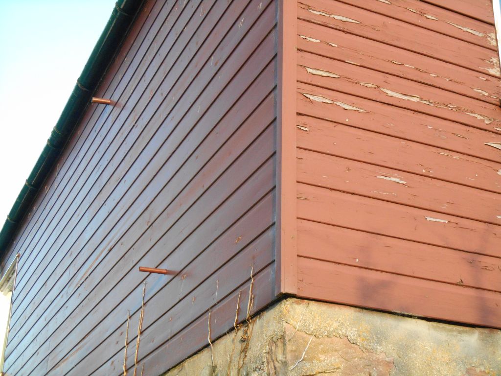 Hi folks, I need to paint the external t&g type cladding on the back extension once the weather improves. The current paint/stain (not sure of age) is ok on 2 sides but the windward side is very poor.