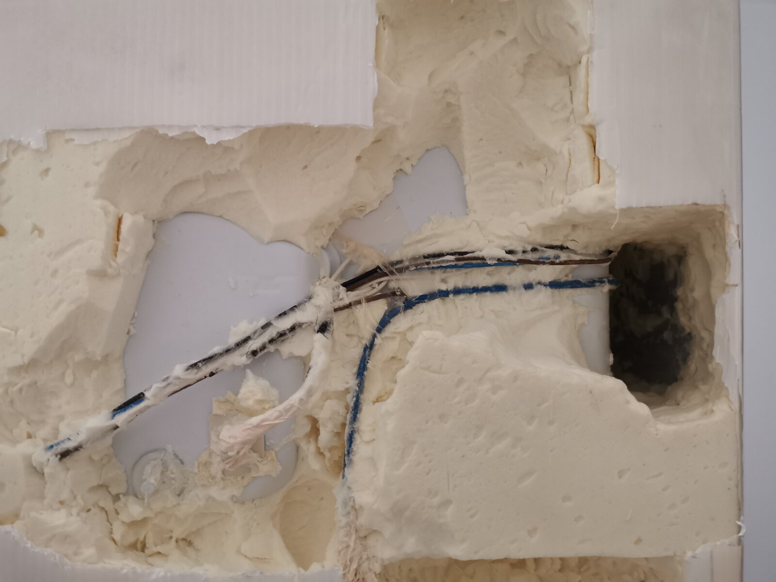 Given the pcb is on top of the fridge per attached pic, I dug out the insulation and could not find what I believe is the thermostat sensor as the blue wire disappears to the side of the fridge per the gap per pic.