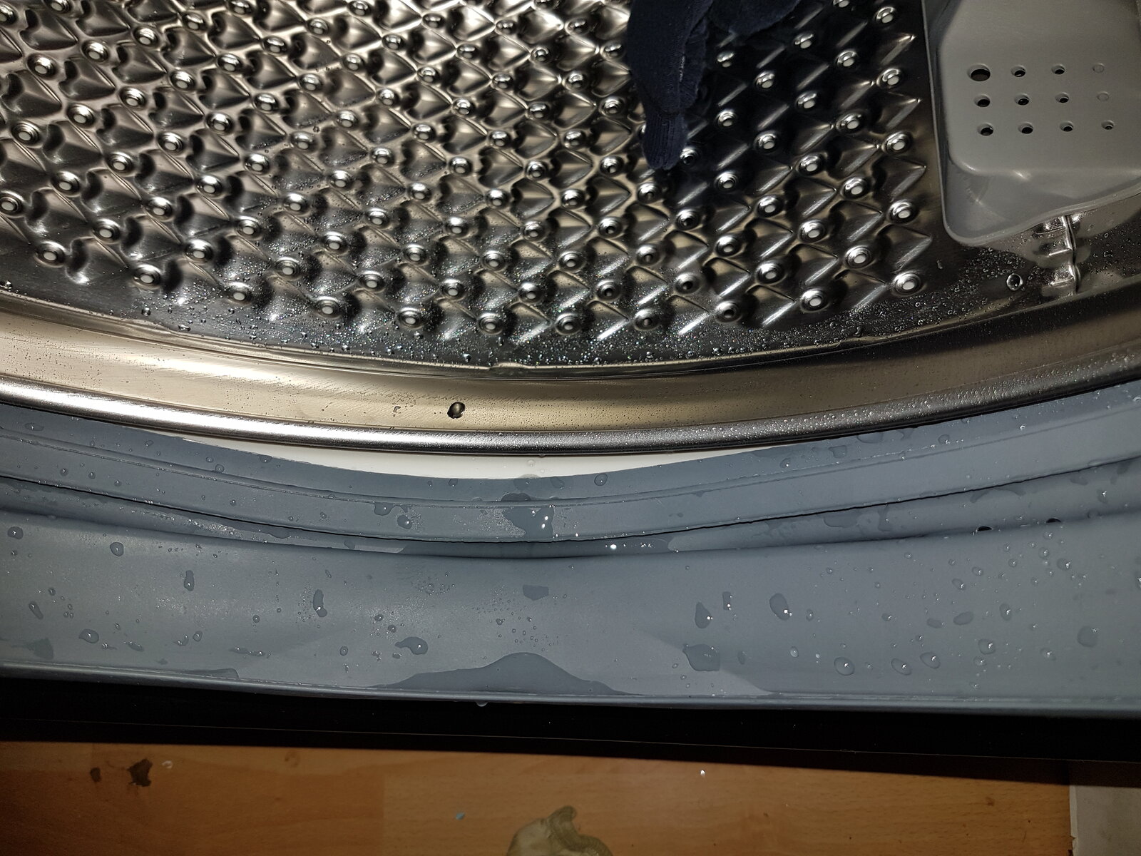 Also notice it seems to leak about 10 cm into the front bottom. Directly where you can see the rubber seal is apart from the metal drum. I have tried to push the rubber seal in tighter but it still leaks from underneth. What does it sound like the issue is? The water seems to be leaking between where the rubber meets the metal drum and coming stright down onto the floor. Is this something I can fix do you think? any tips anything I can try?