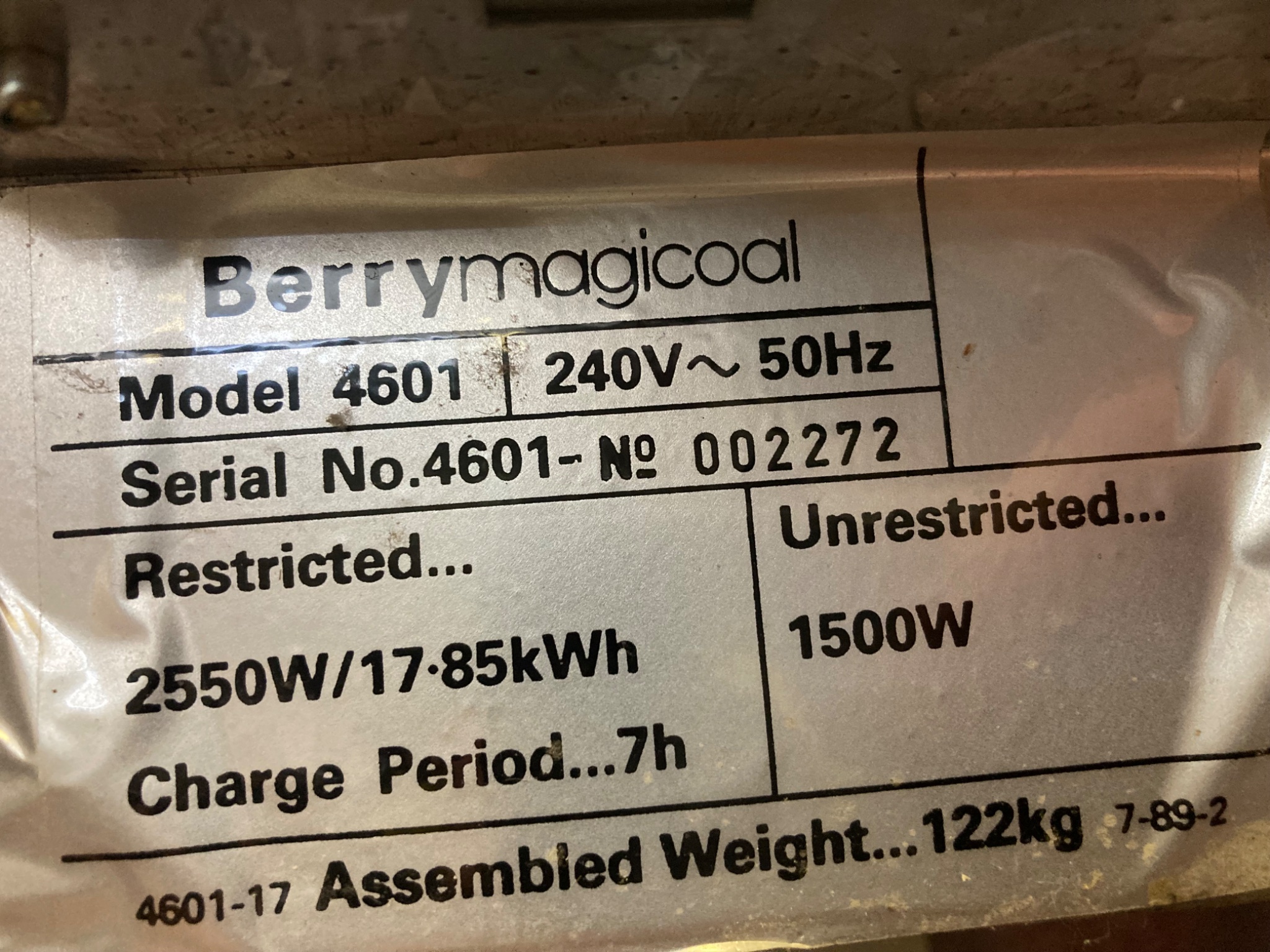 Thanks for this reply. I’ve attached a photo of the info plate for one. I did also try contacting a supplier of spares and they weren’t familiar with the brand and suggested it’s likely another model from someone like Dimplex rebranded. I tried Dimplex too and the person on the phone hadn’t heard of Berry Magicoal.