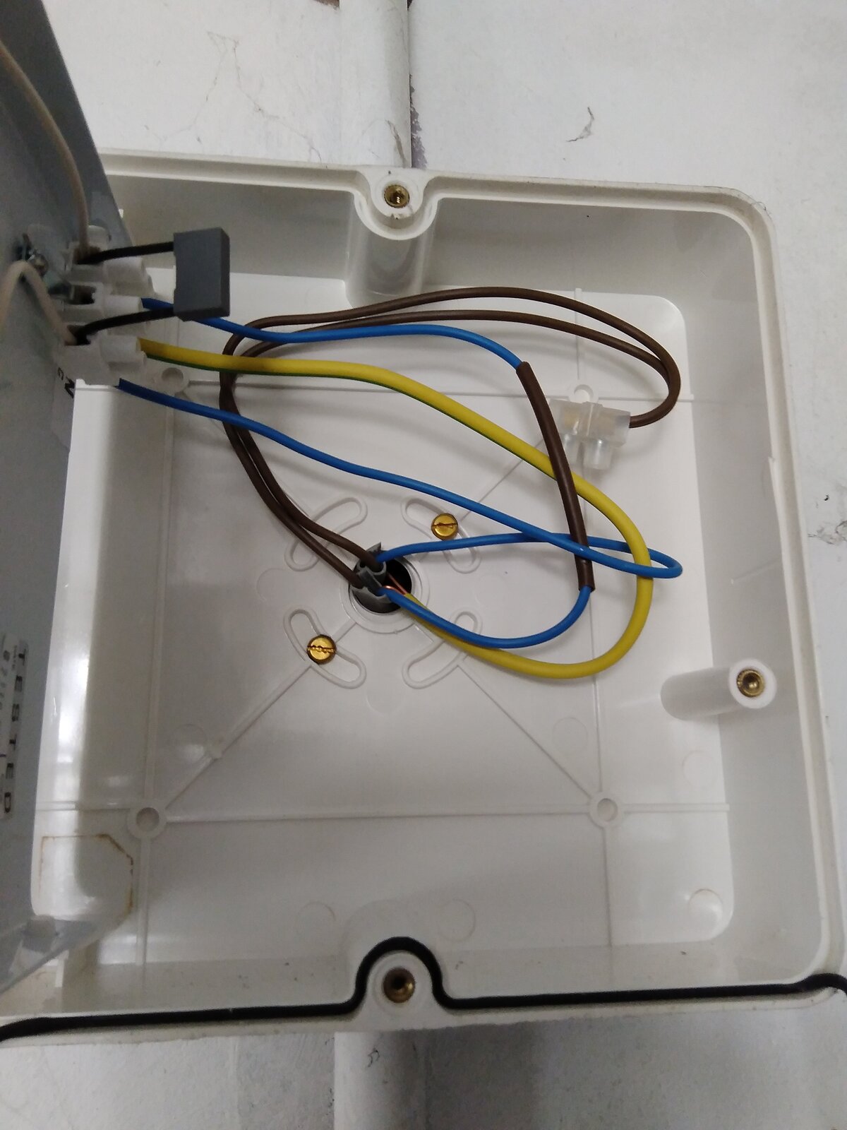 The general situation is, the light was attached to a 25mm conduit terminal box, and I intended to fit the original fitting back, but it has been suggested he had got rid of the fitting.